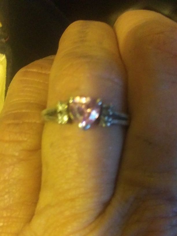 Beautiful Sterling Silver Pink Heart Ring Size 6