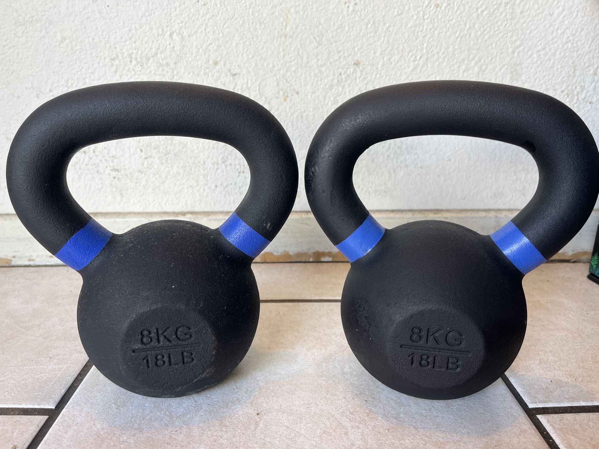 New 18lbs Powder coated Kettlebell Pair