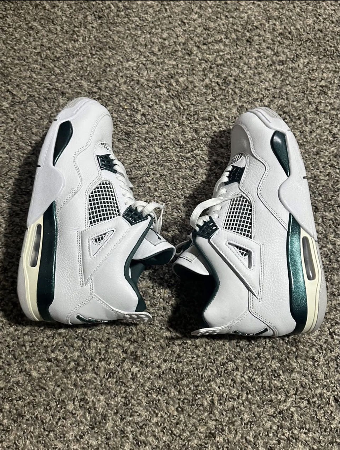 AIR JORDAN 4 RETRO, WHITE/ OXIDIZED GREEN-WHITE BLANG/ BLANG/VERT OXIDE Size 10