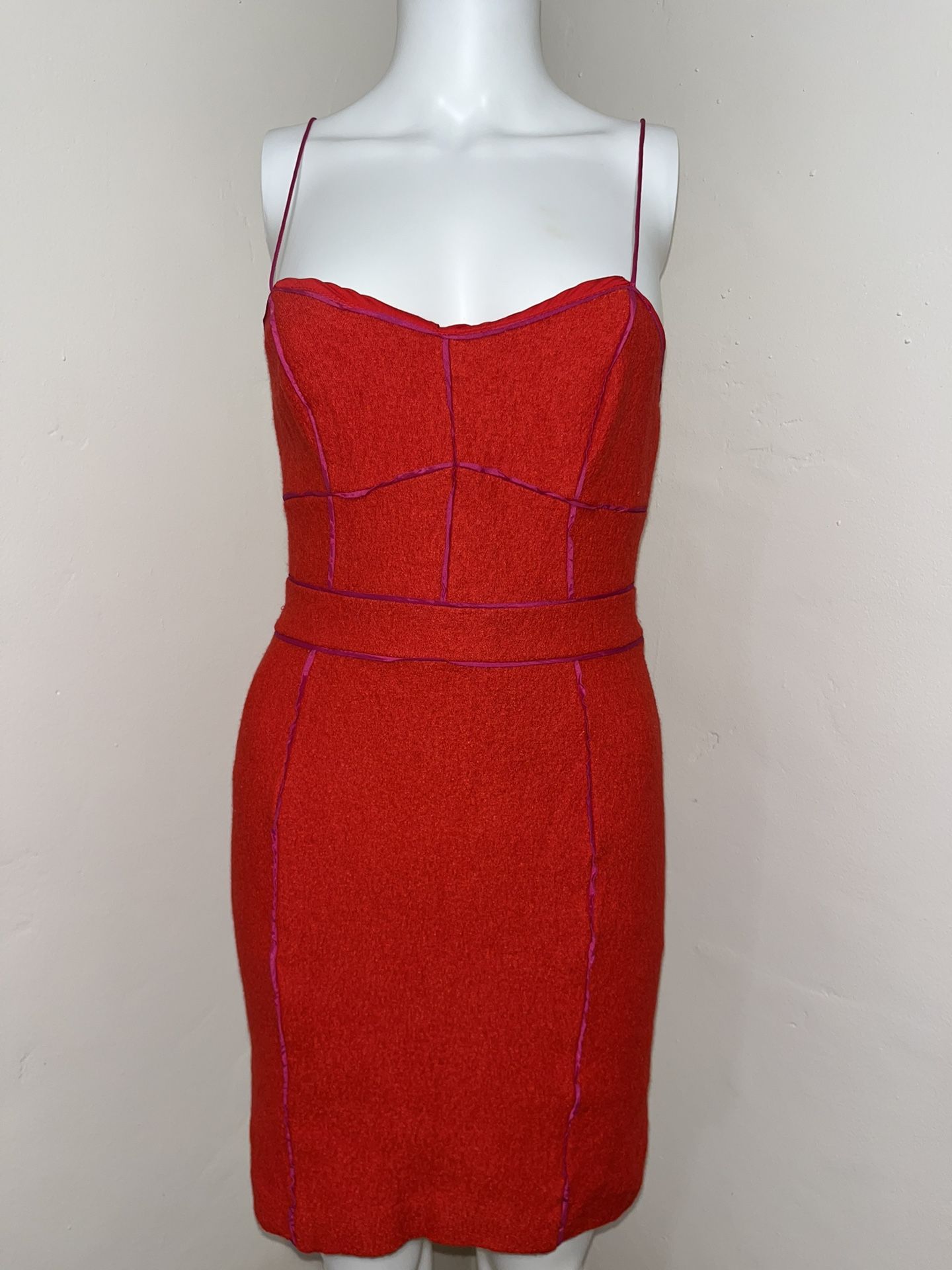 Banana Republic wool Red bodycon dress with pink trim Preowned Size 0 Has some wear ( straps show some withering) Sku#41 B2 #bodycon #party #clubwear