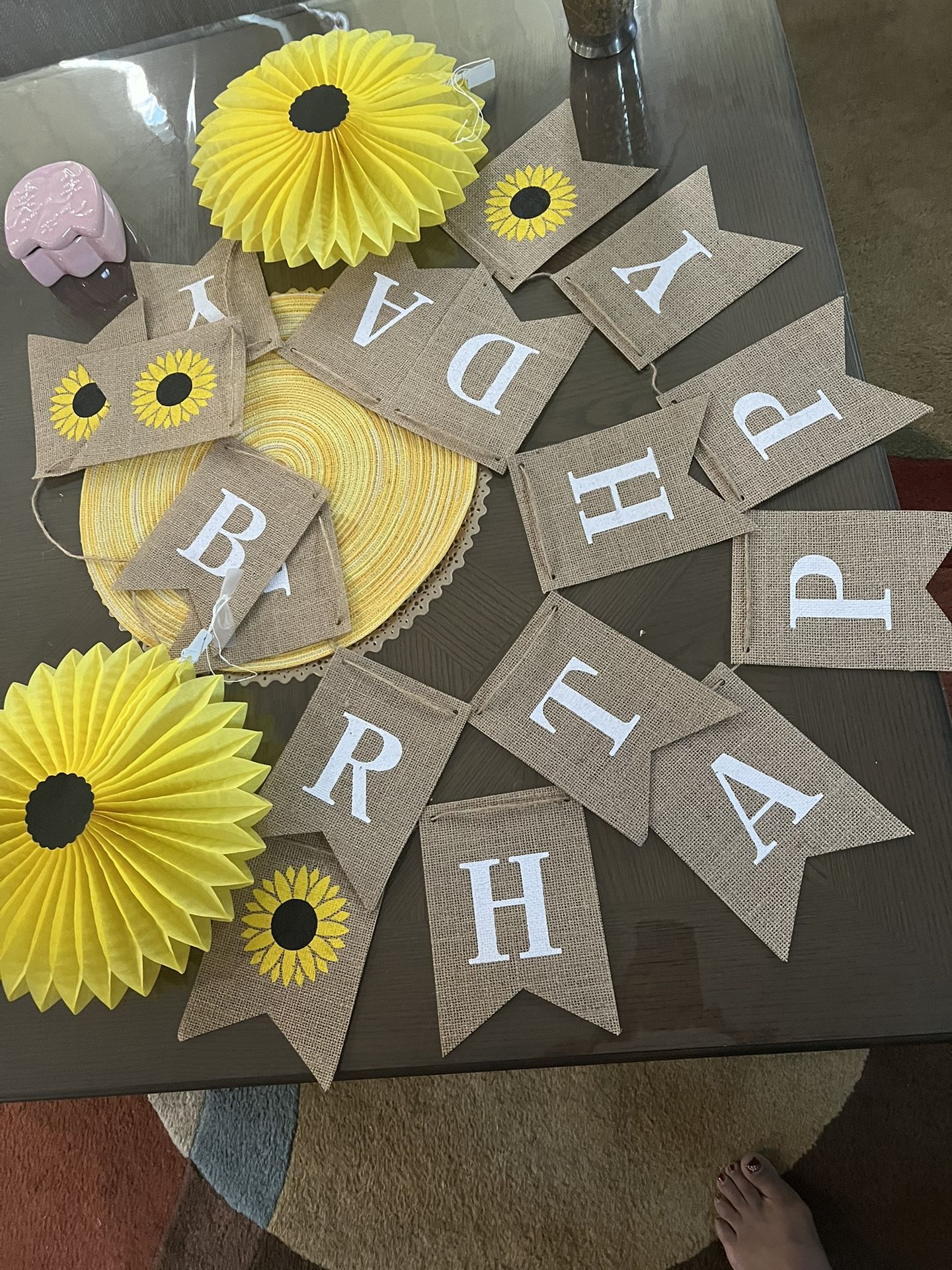 Burlap. Birthday supplies. Used once. Coming from smoke free pet free home. $10
