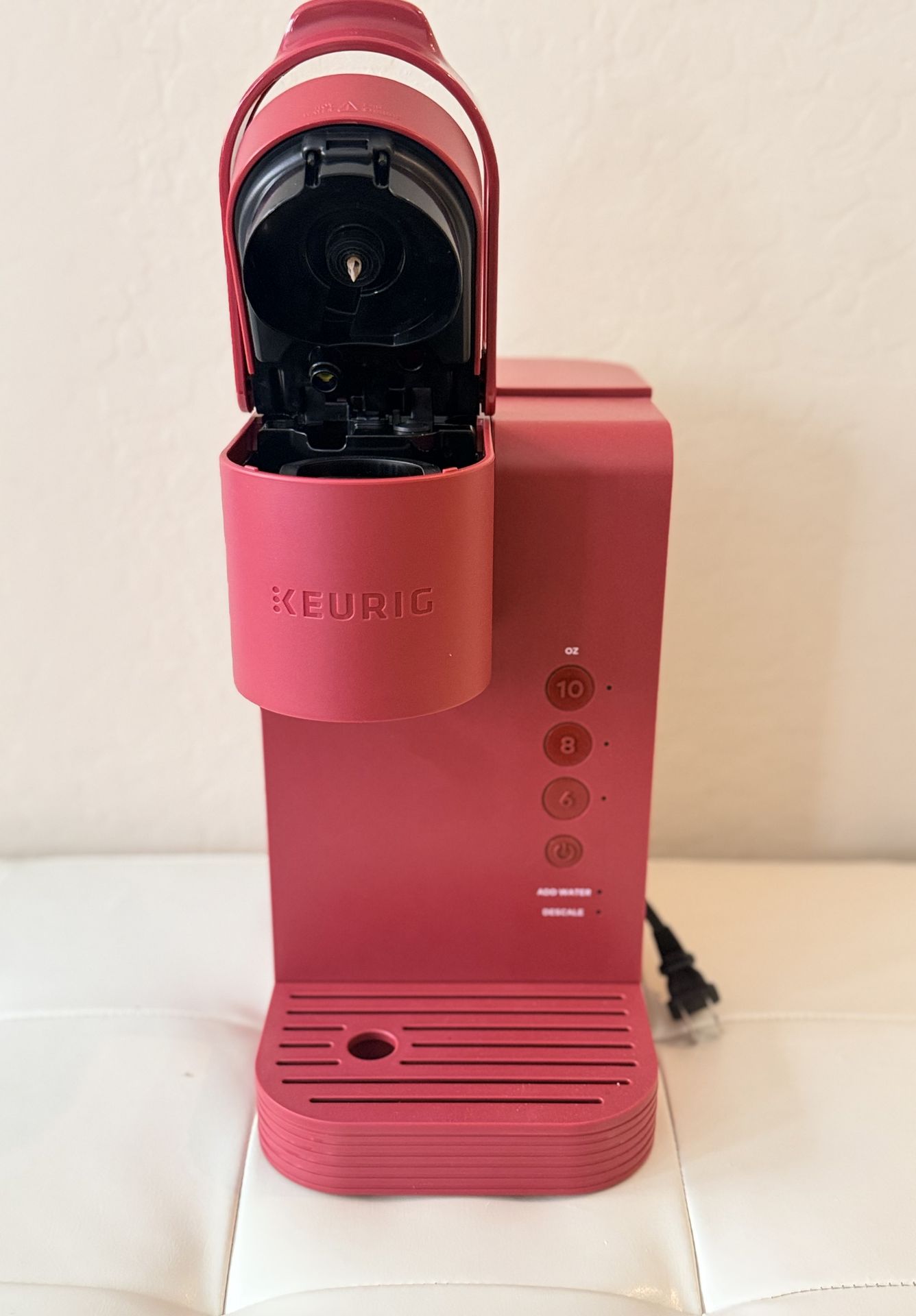 Barely used Keurig single-serve coffee maker in vibrant red. Works perfectly and looks almost new. Very clean condition. Cash pickup. First come, first served.
