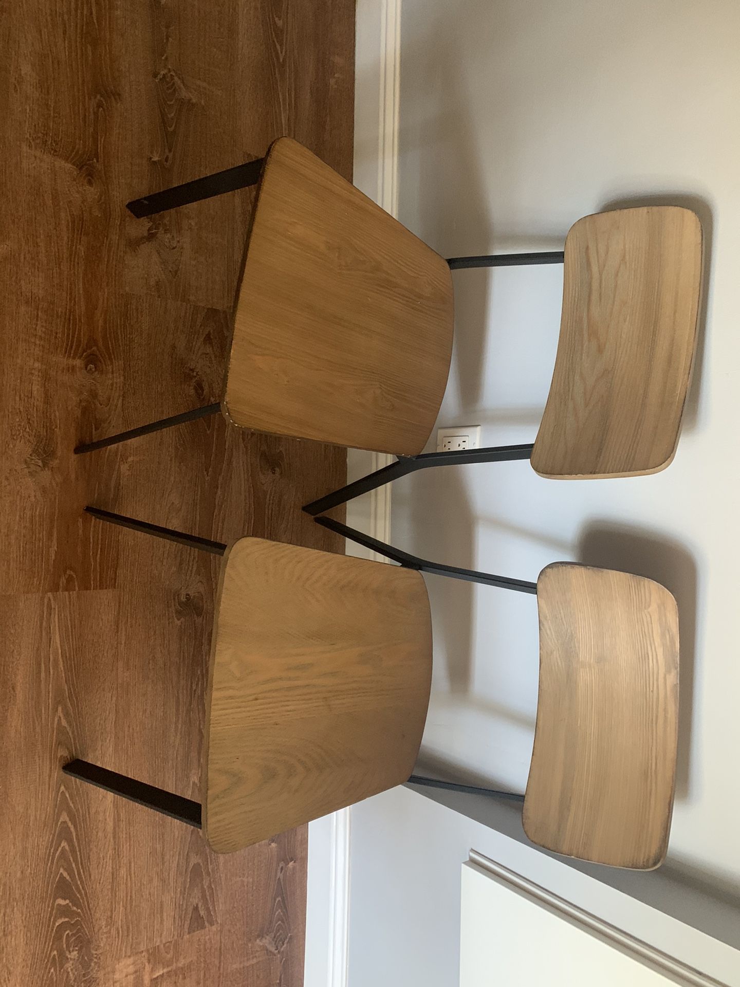 For sale 3 dining chairs, bought a year ago at living spaces San Leandro for house staging. Some scratches and dents but overall in good condition.
