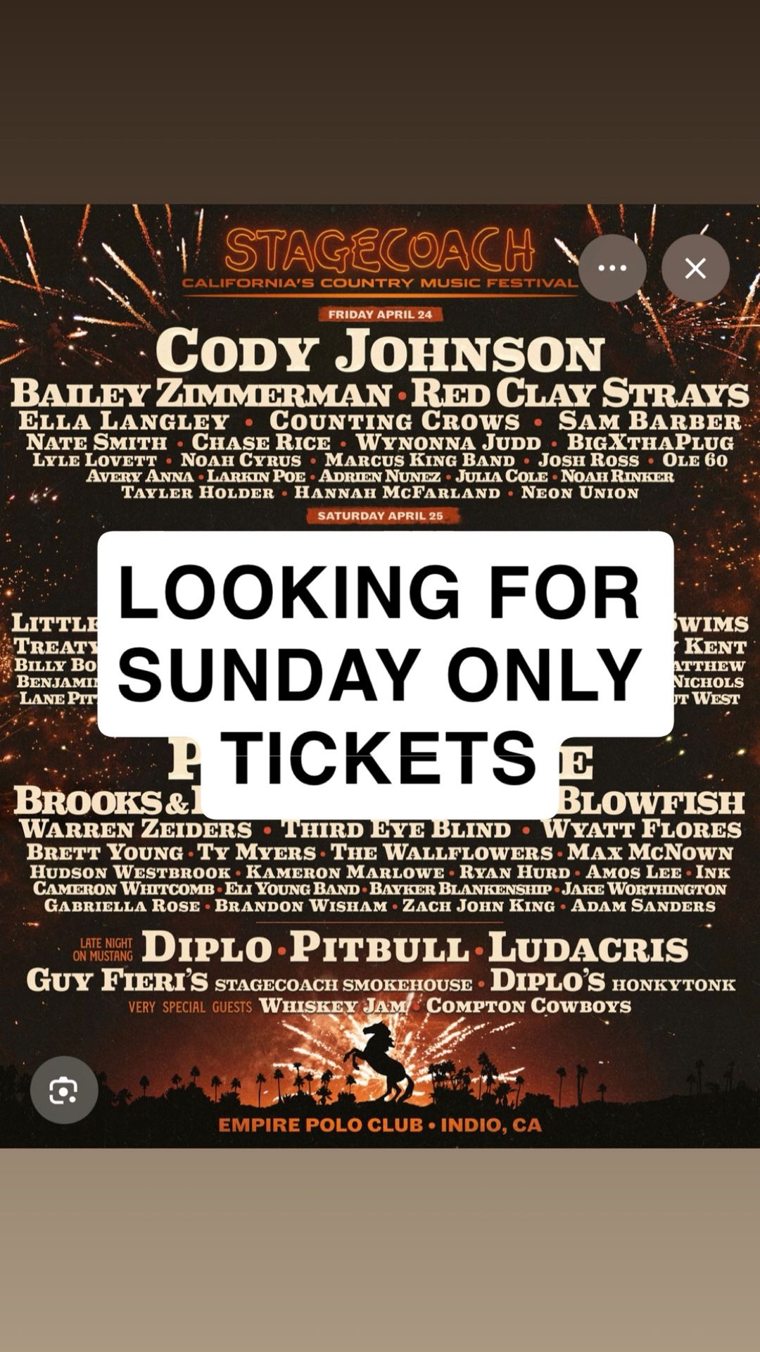 Looking for some Sunday only passes to pass off either saturday night or Sunday morning in Indio.