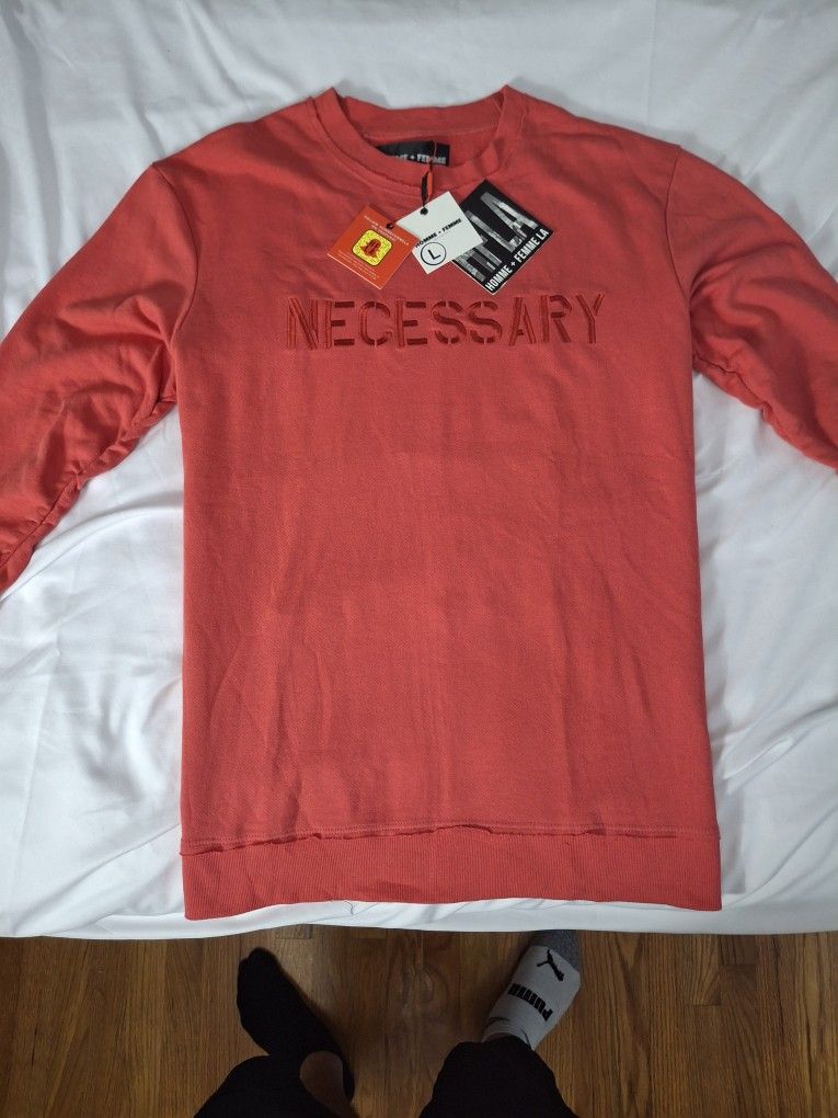 Selling a lot of 3 original Homme + Femme LA (HFLA) hoodies, all brand new with tags, size L. Same model “Necessary,” featuring high-quality chest embroidery. One of the three also includes “Urban War Zone” embroidery on the back. 🧵 Details: Brand: Homme + Femme LA (HFLA) Model: NECESSARY Crewneck Size: L (all three) Condition: Brand new with tags Fit: Unisex / Relaxed Streetwear Fit Material: Premium heavyweight cotton Front embroidery “NECESSARY” on all three One hoodie with back embroidery “URBAN WAR ZONE” Colors included in the lot: Olive Military (front + back embroidery) Beige / Sand Red / Brick Red 💥 Perfect for: Streetwear lovers inspired by Los Angeles Minimal yet premium outfits Homme + Femme brand collectors Resellers (higher value when sold individually)
