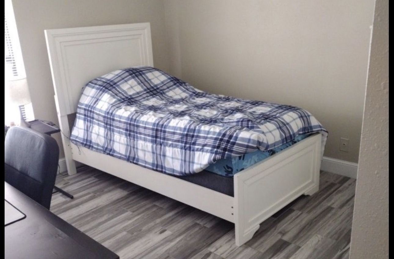 Twin white bed + mattress+ box
