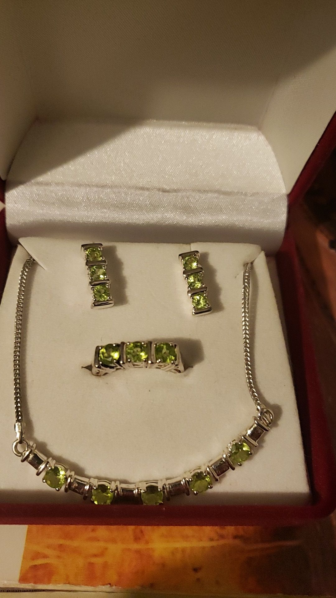 Never used . Ring size 8. Green stones.