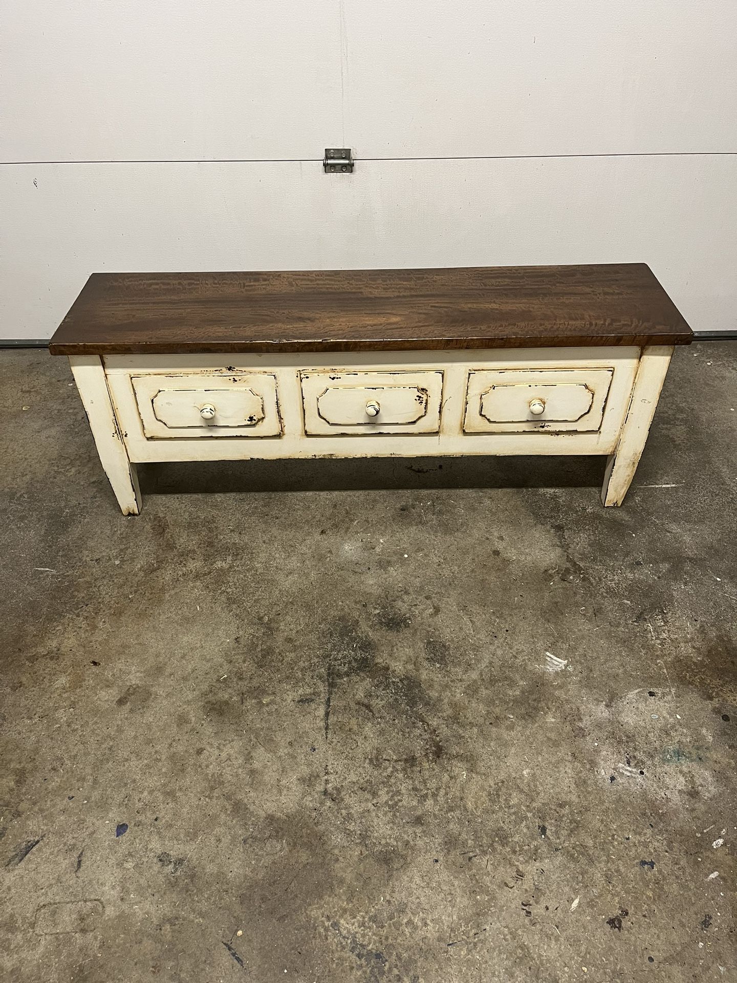 Vintage Distressed Look Wood Bench With Faux Drawers in Great Condition