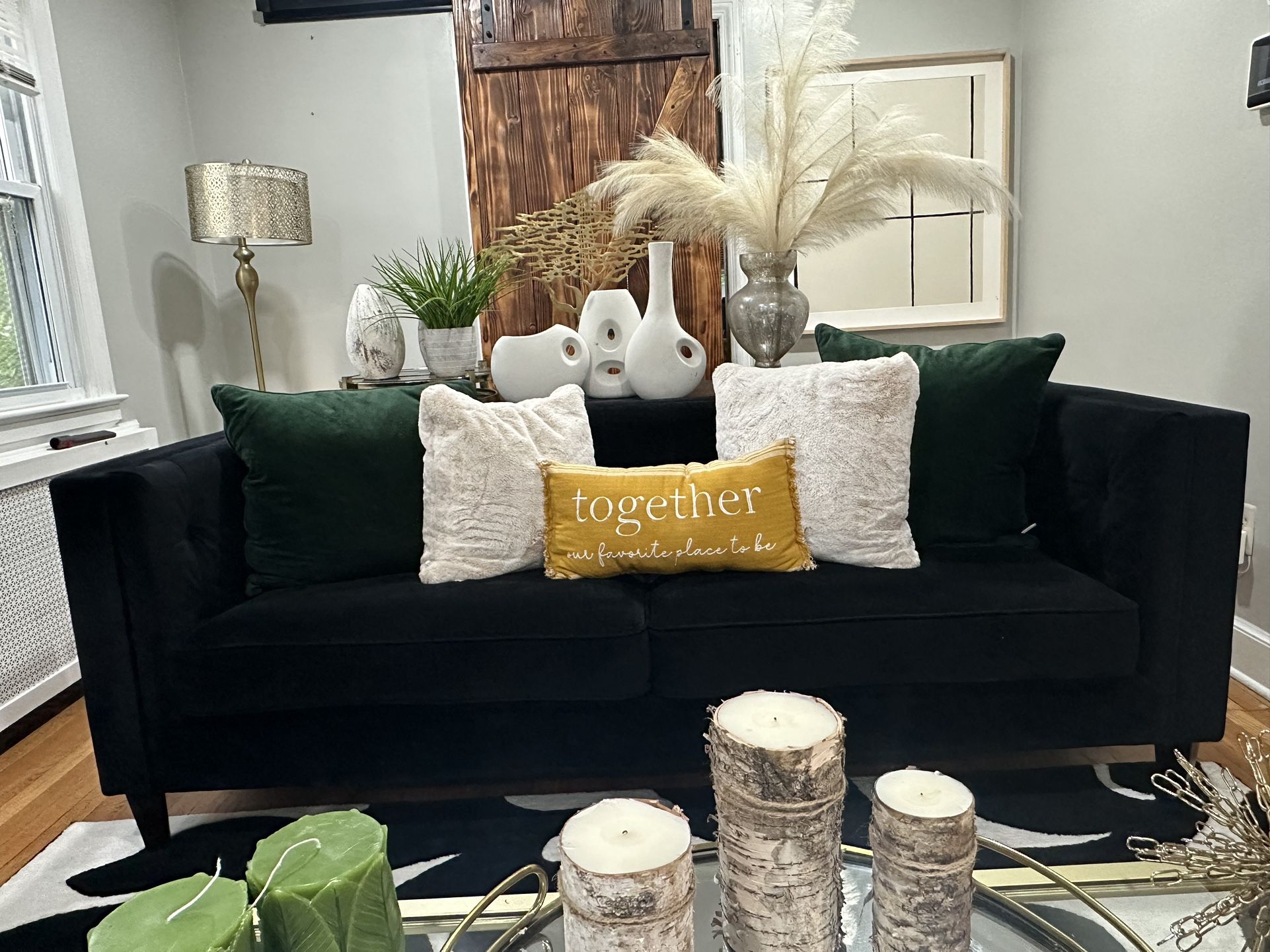 For sale! Contemporary modern living room set. Includes sofa and chair only (unfortunately decor is not included, but can be used as inspiration if you choose to re-home these beautiful pieces!) DM with serious inquiries!