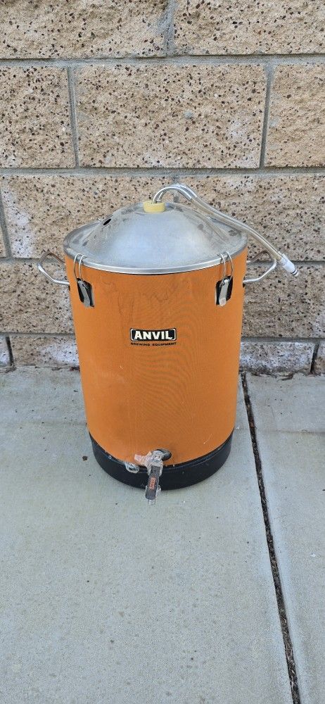 Anvil stainless 7.5 gallon bucket fermentor. Includes insulating jacket and heat exchanger tubing.