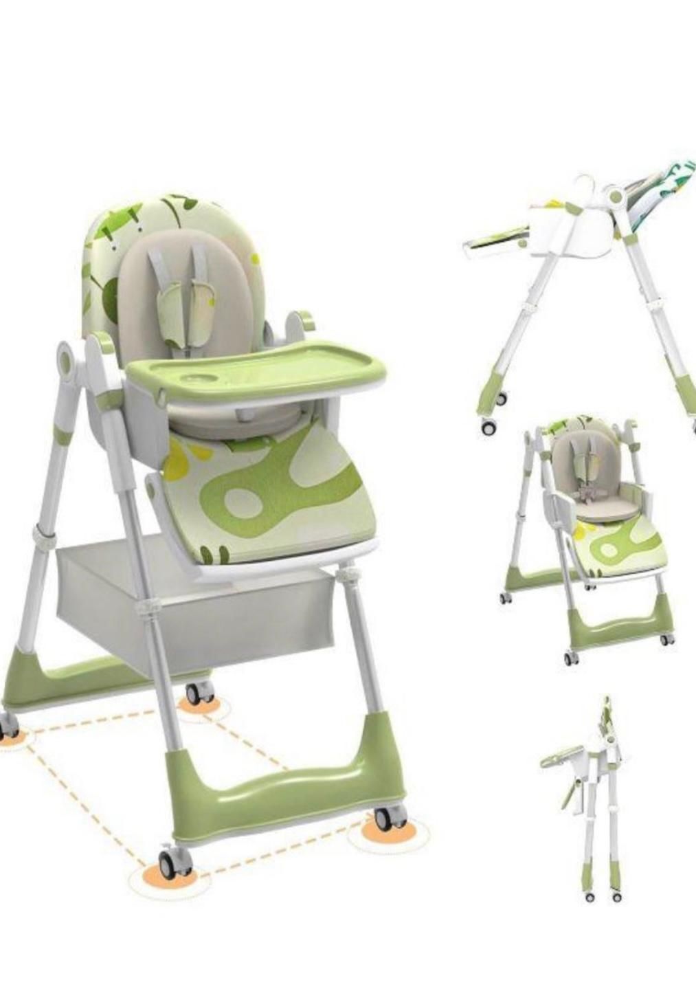 BC1 Colour green Product dimensions 83D x 50W x 88H centimetres Item weight 5.5 kg Age range (description) Baby Minimum weight recommendation 110 Pounds 【Suitable for dining tables of different heights】This high chair can be adjusted in 5 height positions to adapt to dining tables of different heights(22.83"-30.71"). Babies of different heights can find a suitable height to use.Suitable age: 7-36 months.Weight-bearing for 110 LBs/ 50 KG 【Flexible Adjustment】 The highchair's back can be reclined in three angles, making it ideal for feeding, eating and napping. The dinner plate and footrest can be adjusted in three levels, and large children can also get a comfortable dining experience. 【One-key folding】 Our highchair for baby chair can be effortlessly folded away with a single click, freeing up valuable space at home or in the trunk. Note: Only when the tray is raised to the highest position, can the tray be folded and put away smoothly. 【Safe & Stable Construction】 This baby chair for eating adopts a solid pyramid structure, using high-quality steel pipes, which can make the baby eating chair more stable.Meanwhile,5-point harness belt and safety baffle help fix your baby and prevent falling down the chair.