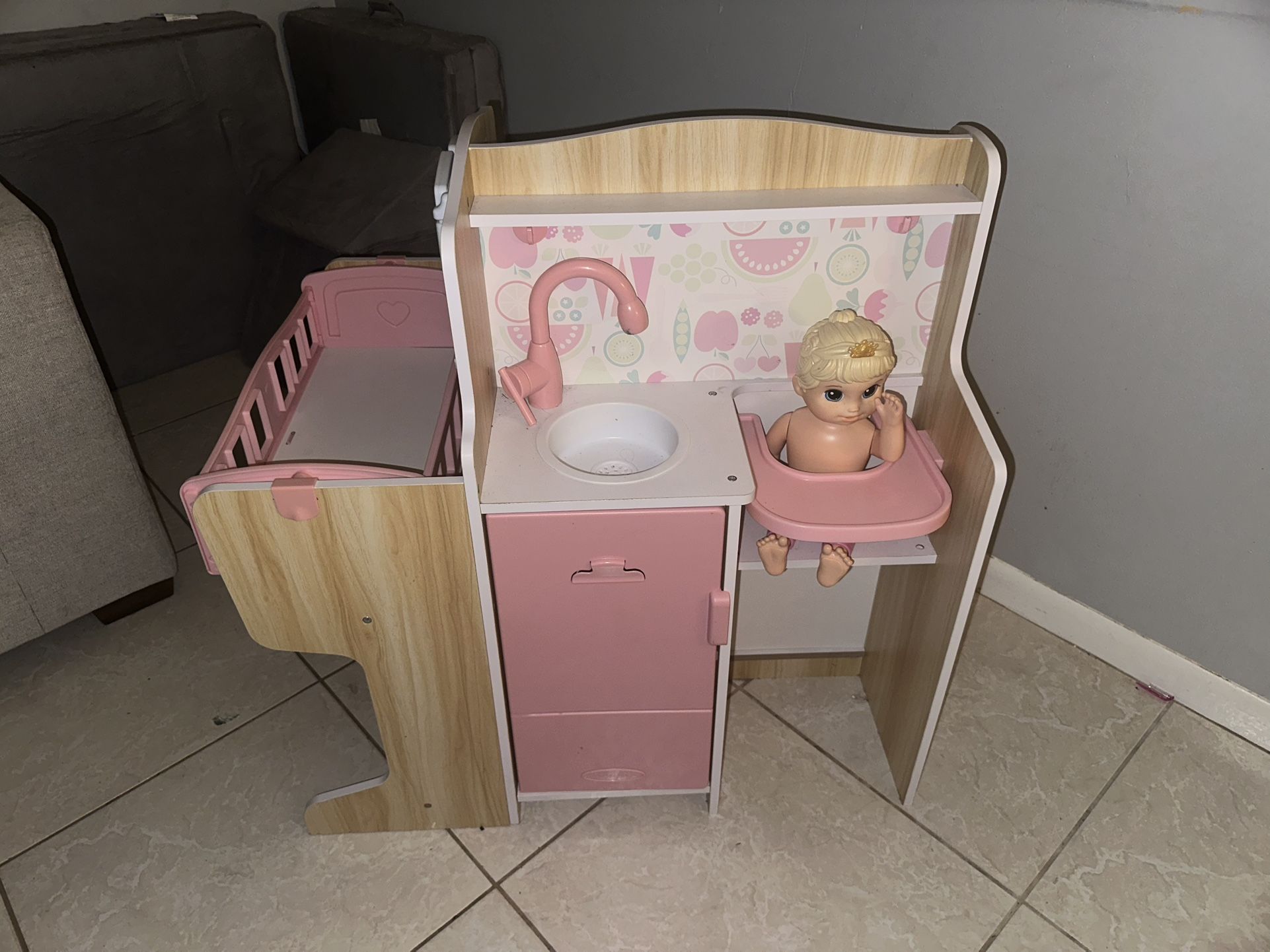 Melissa and Doug baby care center Fun activity on each side!! EUC (Baby doll not included)