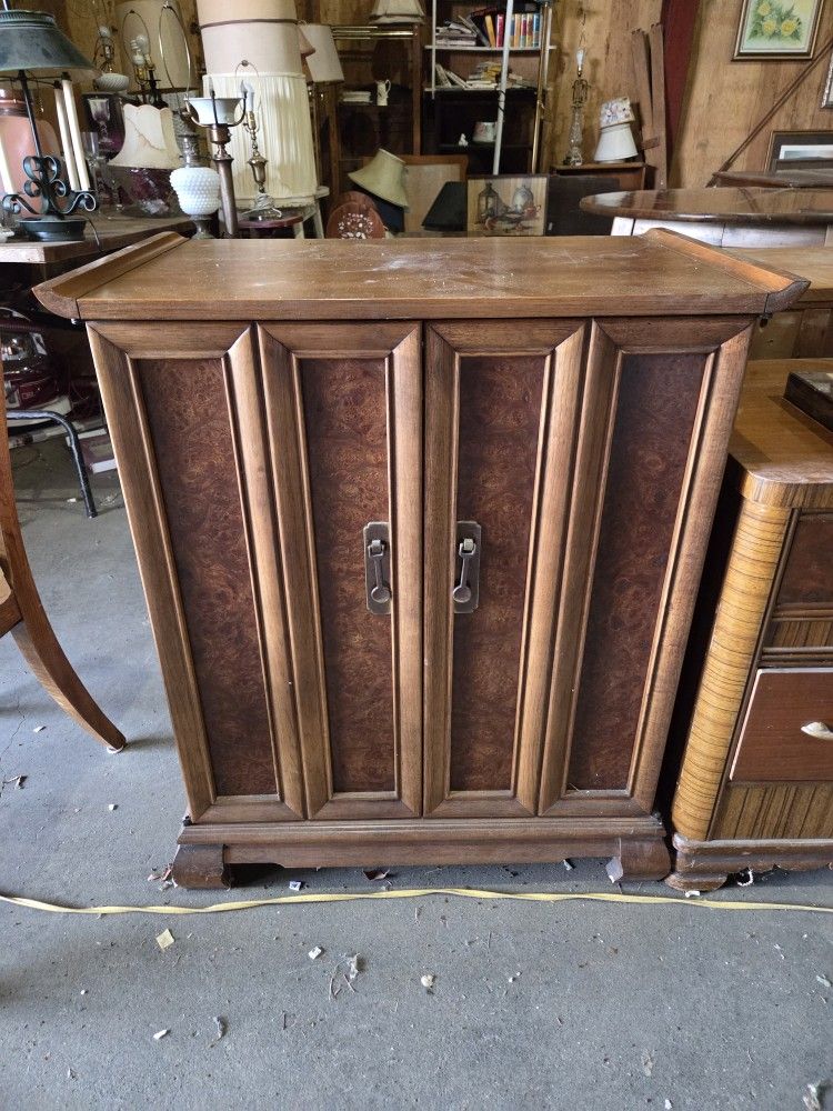 This is an RCA Colortrak 2000 console television. Colortrak was a trademark for RCA's mid-range color televisions, with the 2000 series being positioned as a high-end model. The televisions were part of and a system of high-end audio/visual equipment. Some models, even floor consoles, featured two stereo composite inputs, which were rare for the time. It does turn Could be gutted and made into beautiful dry bar