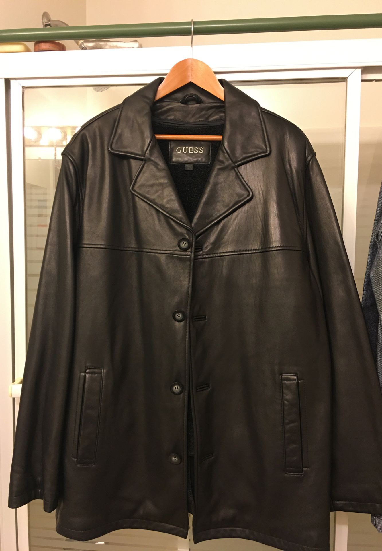 Brand New Men’s Extra Large Guess Leather car coat without tags color black