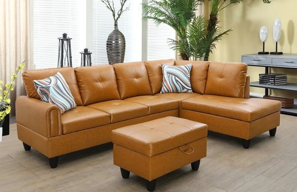 Ginger Sectional Couch Set w/ Ottoman (Right Chaise)