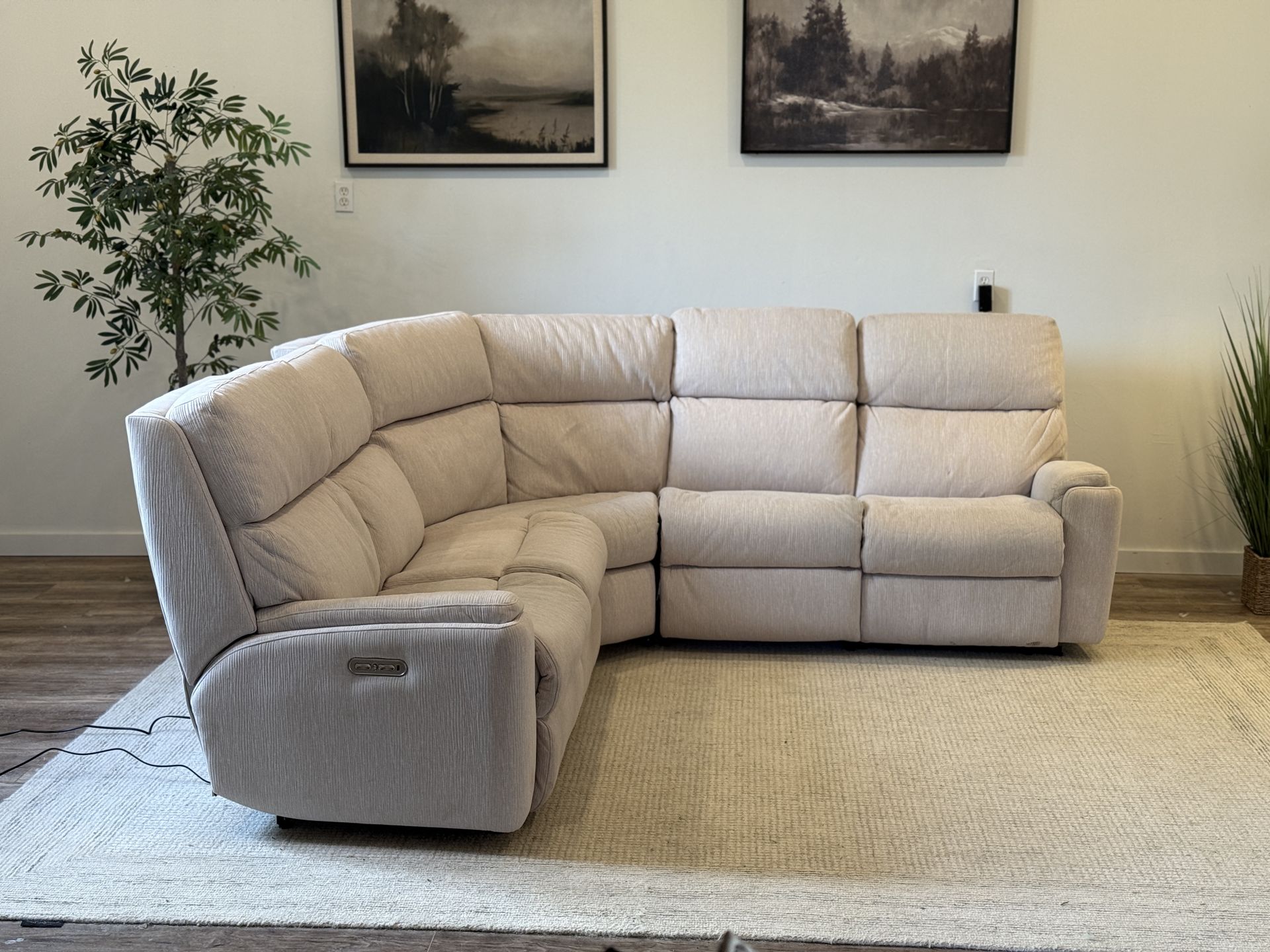 Cream beige fabic Flexsteel electric recliner sectional couch delivery available