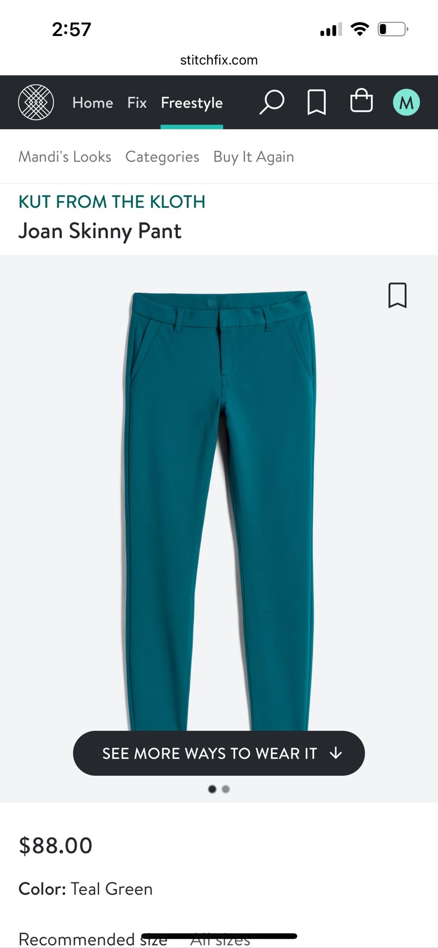 Designer: Kut From The Kloth Size: 8 Color: Teal Green Material: Rayon, Nylon, Spandex Inseam: 29 inches Skinny trouser pants with a tapered leg 9 inch midrise front Front and back pockets Hook and eye closure Stretch fit 29 inch inseam EUC with no notable rips, stains, tears, flaws, etc