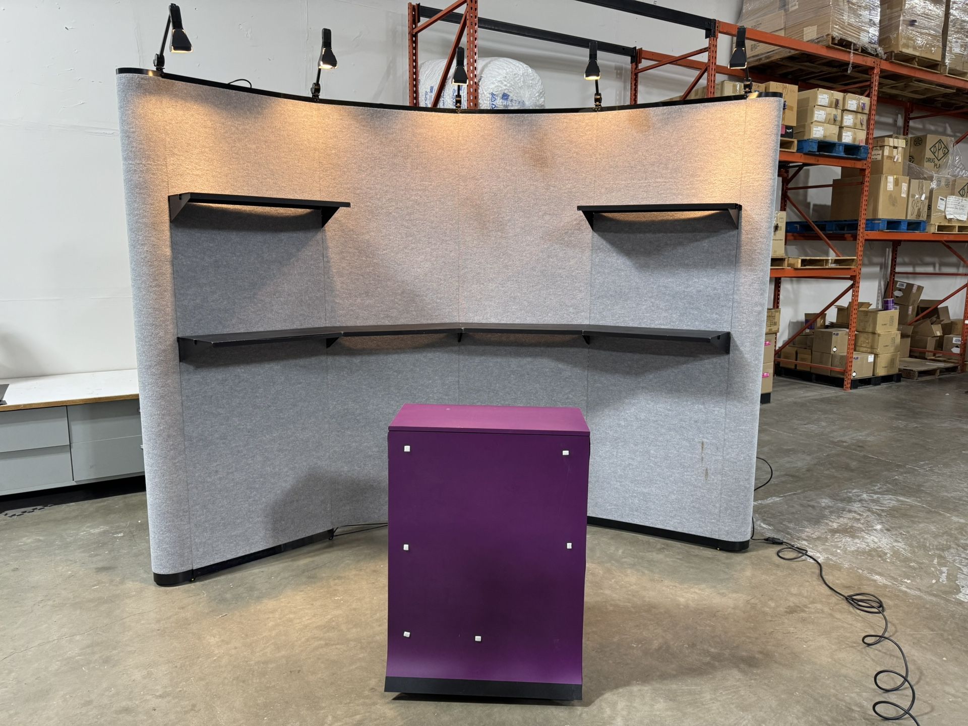 Skyline Mirage 10 x 10 with lights ,shelves and two carrying cases with wheels that turns into the center podium $1.000. or best offer