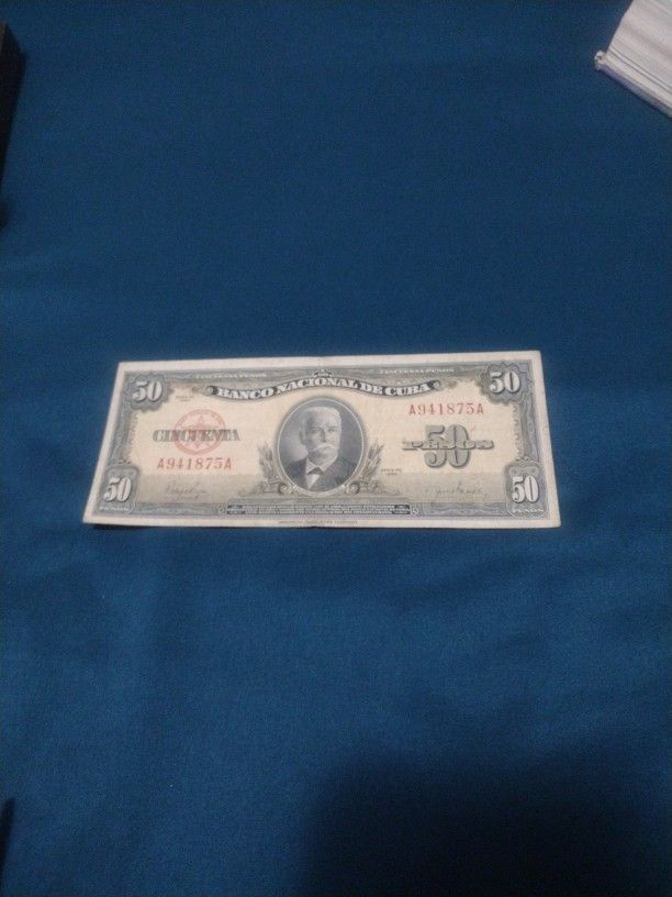 Este billete es $50 pesos del 1950 del Banco Nacional de Cuba