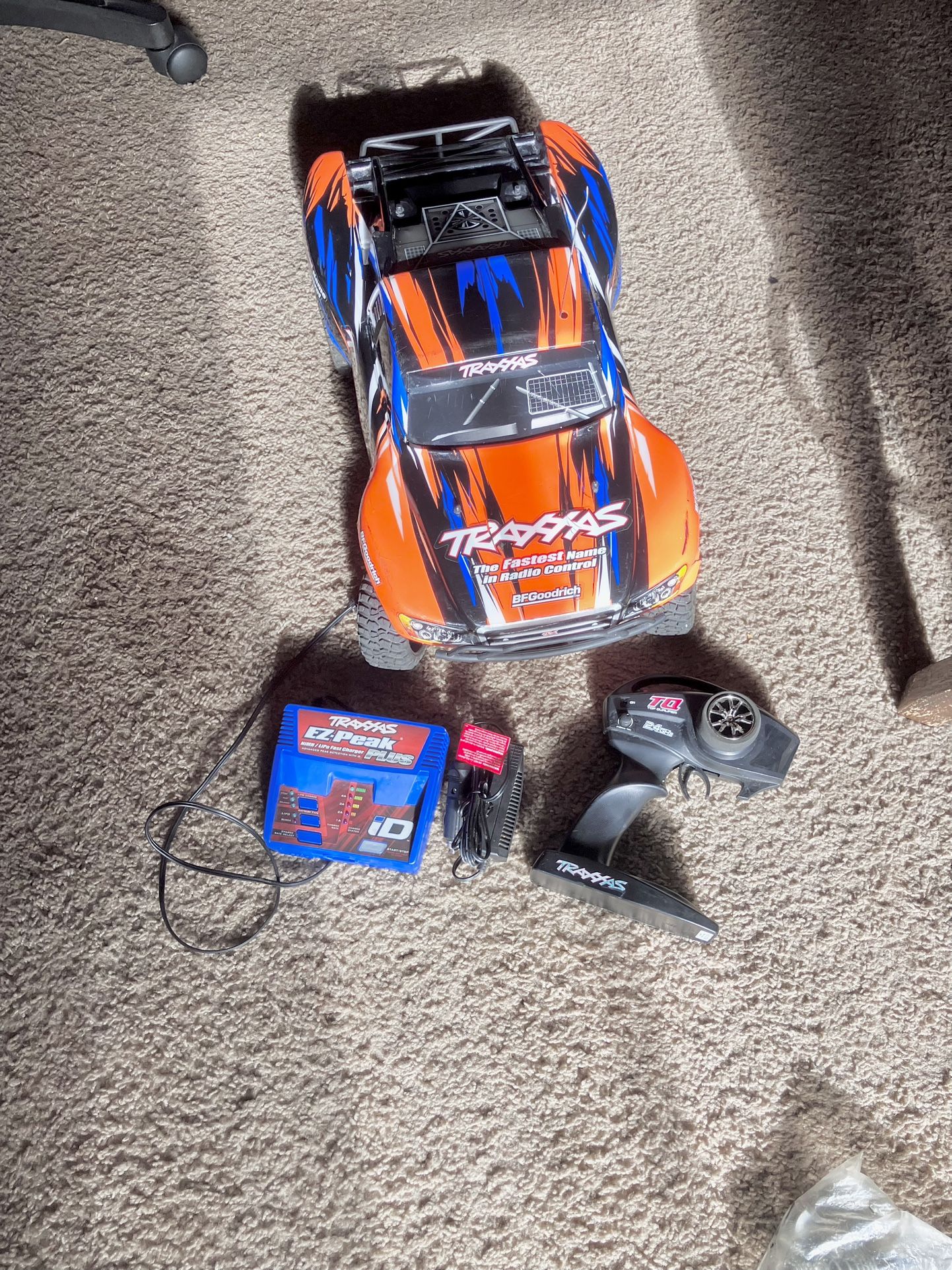 Traxxas slash with brushed motor. Complete with car/home charger. Good to go. Plug and play. Open to trade for computer parts. RTX video. Let me know what u got