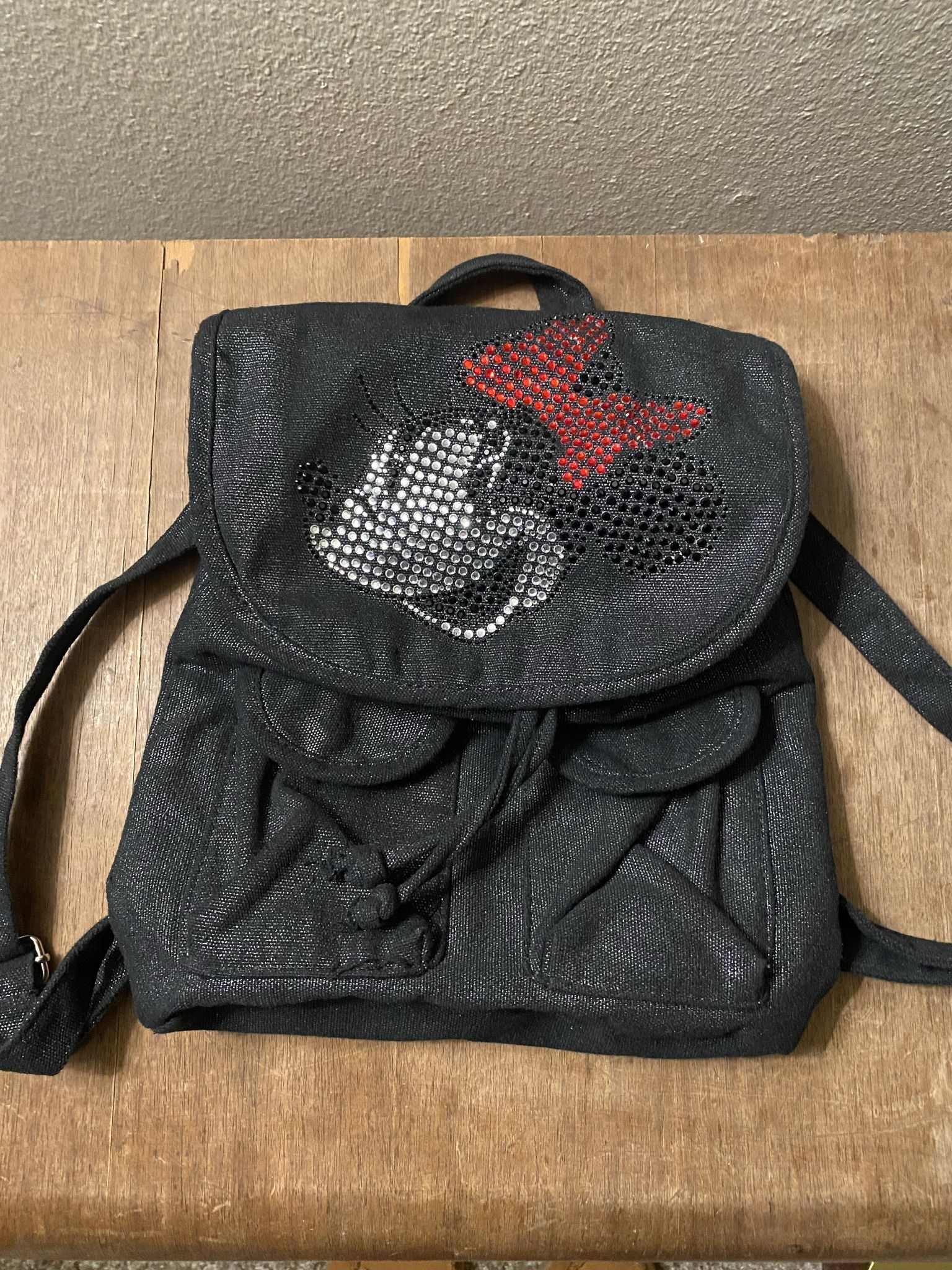 Black canvas material clean open package never used NOT A FULL SIZE SCHOOL BACKPACK… this is more purse size