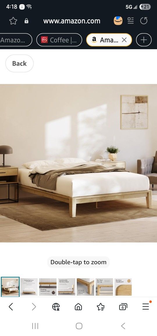 Nectar Bamboo Platform Bed Frame - Queen - Natural - Floating Center Support Legs - 12” Height - Easy Tool Free Set Up - Contemporary and Durable -