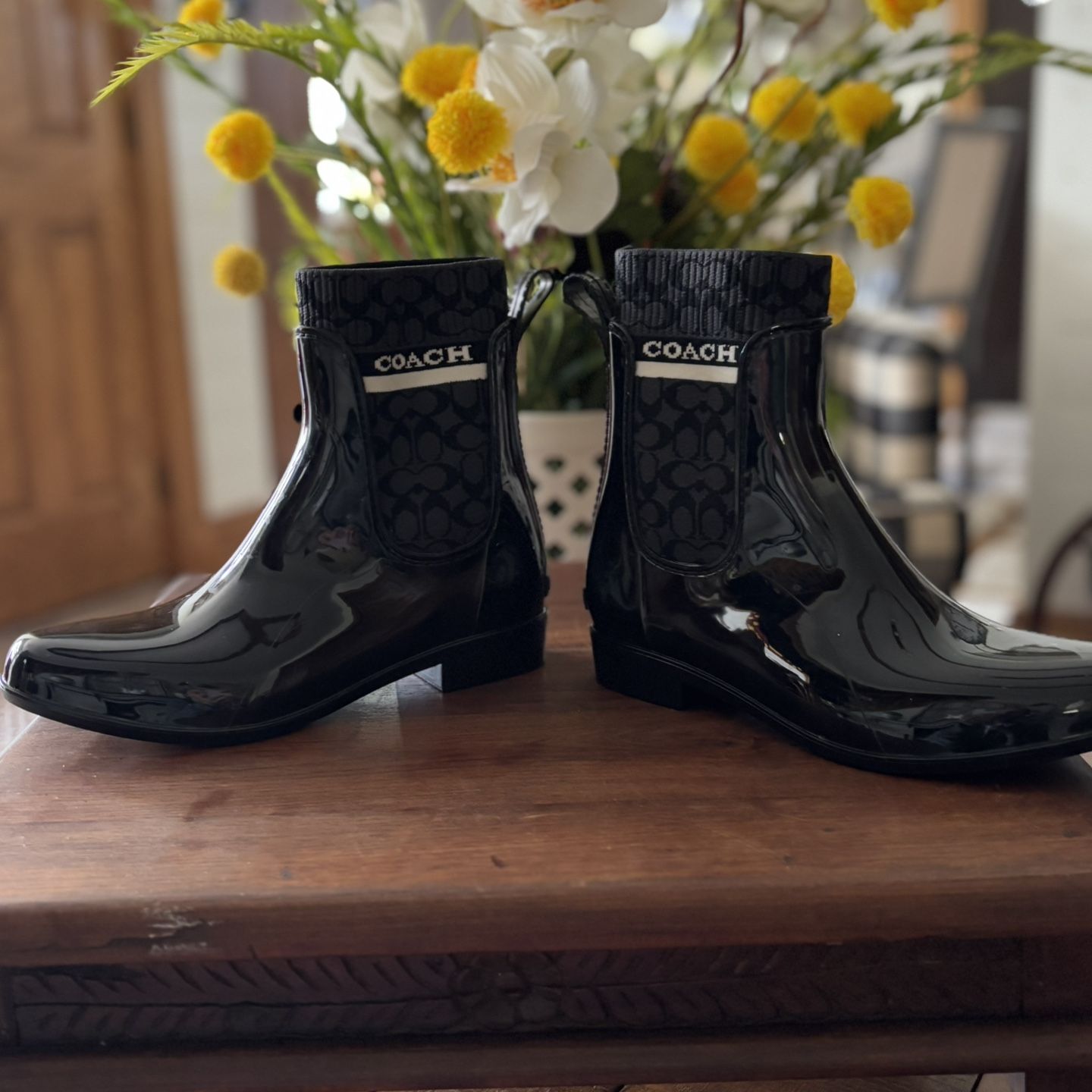 Like New, wore 1X Women’s Coach Rain boots. SZ 7.5 .Like new. Perry porch pickup.