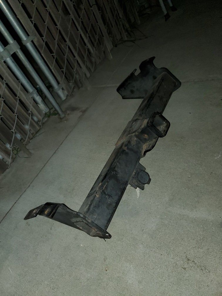 It's that thing you put on your truck or vehicle frame to add a hitch or other for towing. The darker picture is what it looks like in the dark. Dimensions- 34.5 across (center of bolt hole) 2 flat 5 inches apart 1 at the tilt Has the port for the lights No bolts No nuts No coconuts It's just what you see on the picture plus one piece of candy or bubble gum. As is. If you want it to look nicer, it will cost extra. It won't work any better but it will look cool and can be easily scratched. As is looks cooler and more rugged. Chicks love rugged. I'll throw in one cross bolt 🔩