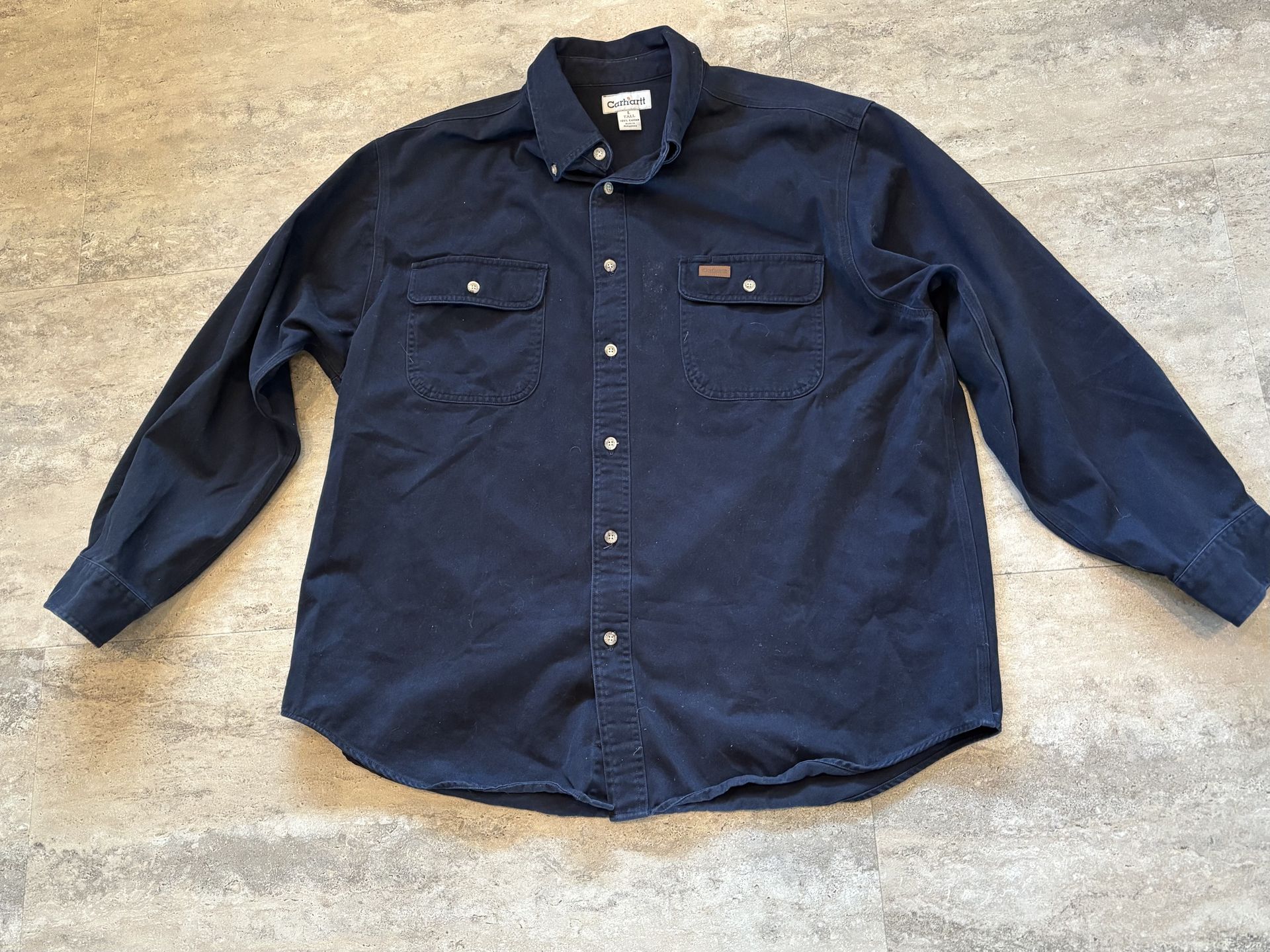 Carhartt Shirt Mens L Tall (LT) Chamois Flannel Original Fit Navy