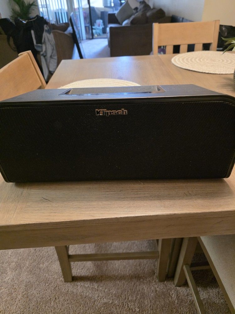 Portable speaker Top quality sound Battery pack option or power operated Bluetoth, auxiliary, USB charging port Klipsch kmc 3