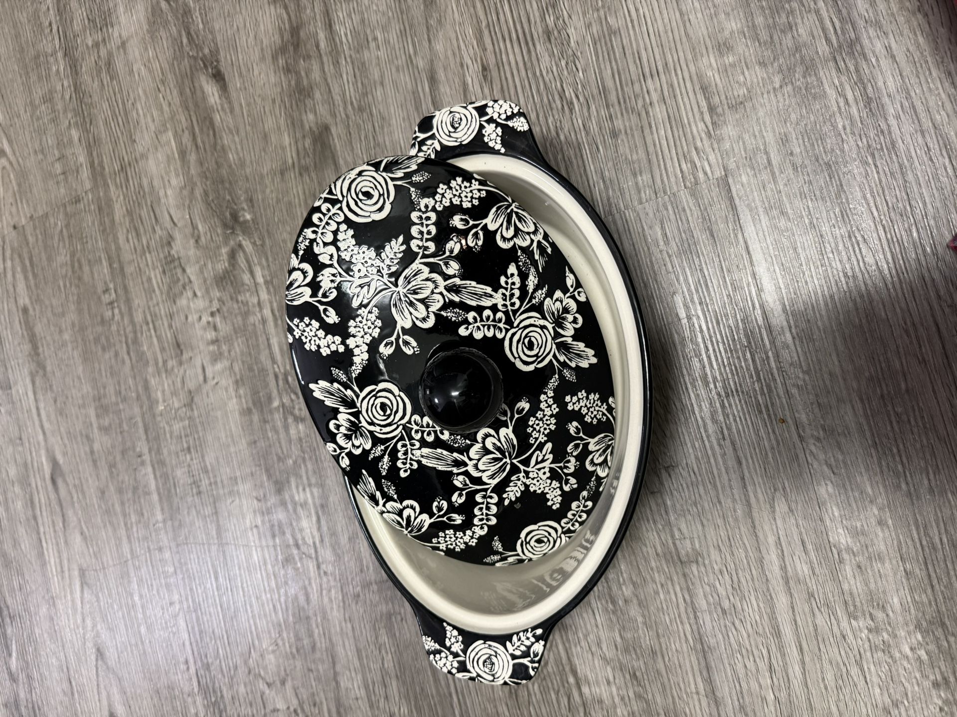 Perfect Petals Black & White Ceramic Oval Casserole – 2.5 Qt Used Only Twice – Like New Beautiful black and white ceramic casserole in excellent condition. Perfect for baking, roasting, or serving. 2.5-quart capacity makes it ideal for small to medium meals. Clean, sturdy, and ready to use.