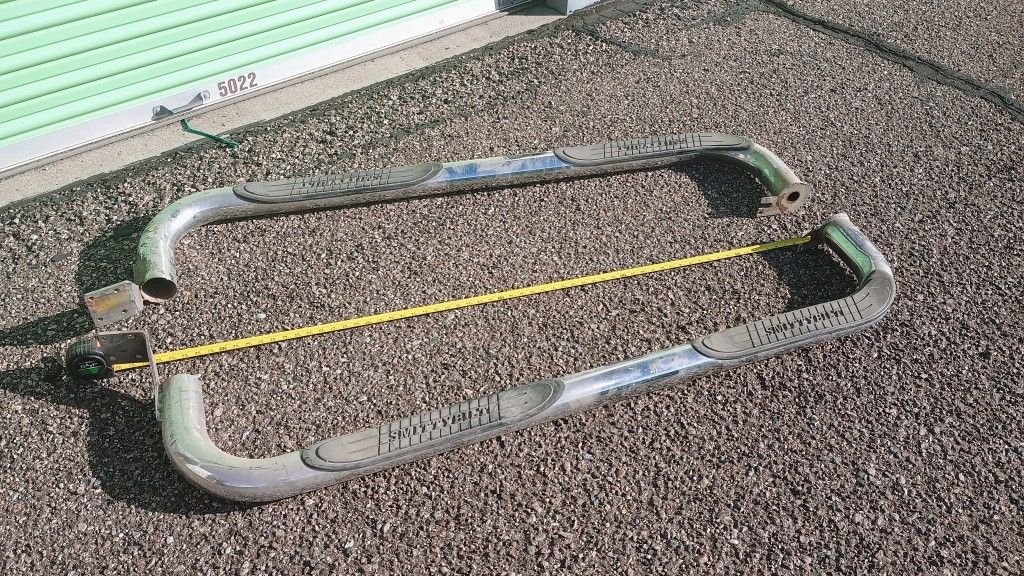 Chrome side steps or running boards by Smittybilt Well-used, dirty but functional. Not sure what they go to, they were bought for a first-gen Toyota Tundra access cab but do not fit it. If you can weld, you could probably modify or fab up adapters for whatever vehicle you have.