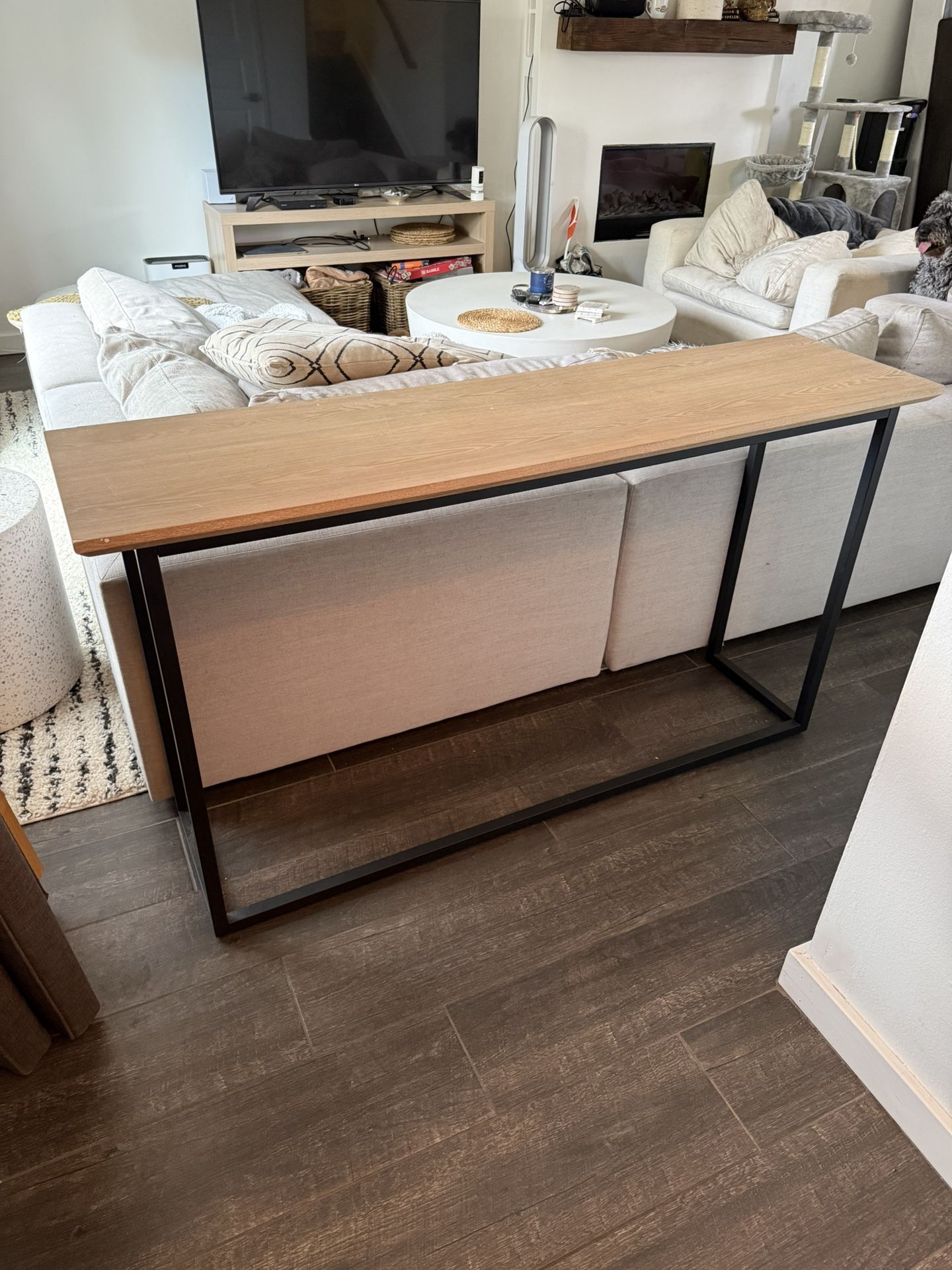 60” light wood wash entry table Dimensions: 60” long, 15.5” deep, 32” height Very good condition-only used for a year Moved to a different place and it is too big for my entry space so I have to sell it and get something smaller-there is nothing wrong with it. Perfect for a catch all by your front door or behind your couch. Bought for $250 plus tax, selling for $150 and it’s already built for you 👍🏼 PPU McDonald and Granite Reef