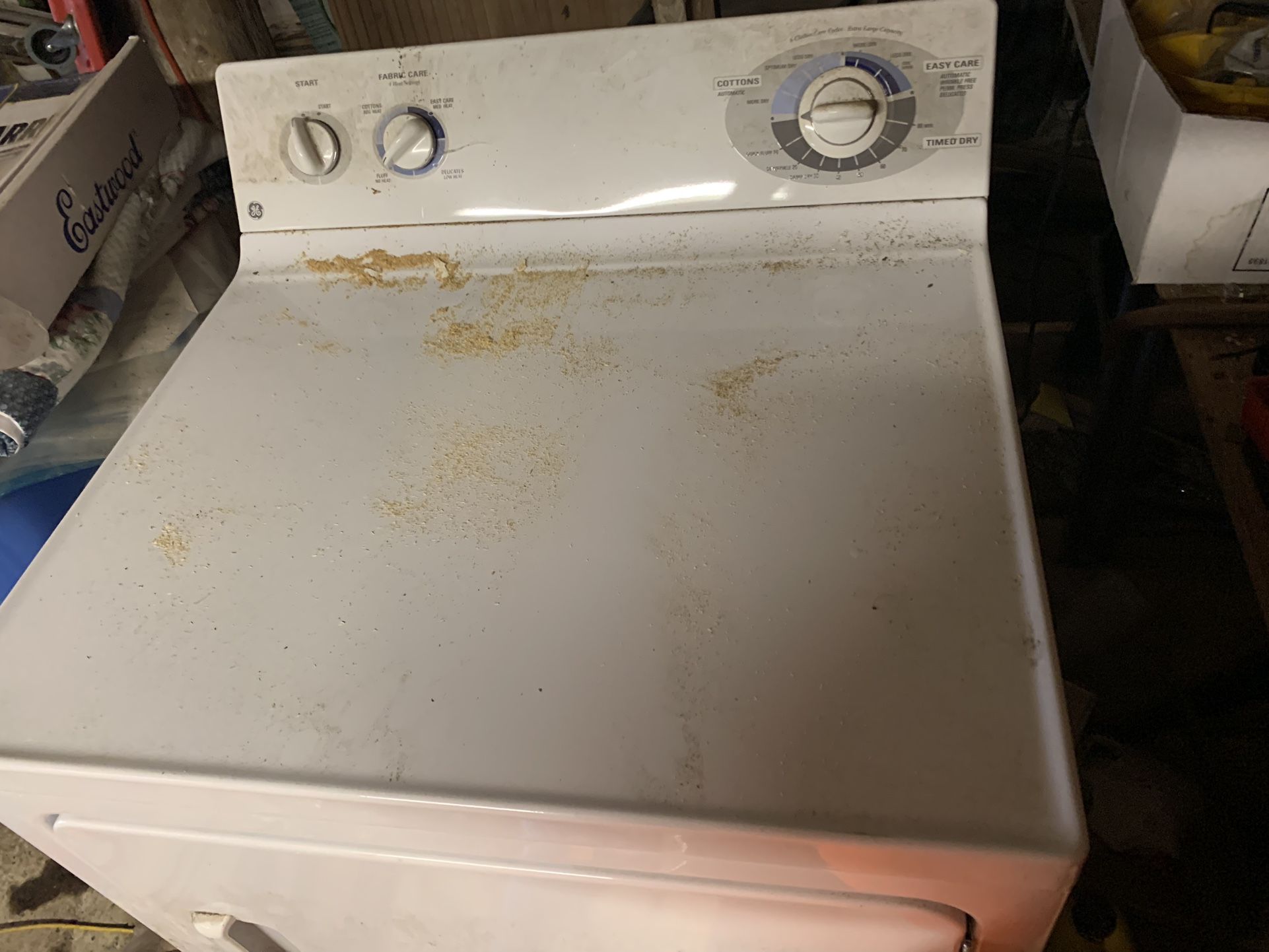 GE Dryer Extra Large Load 6 Cycles! Works needs Cleaning on outside Gas Dryer with hose . White good condition!!