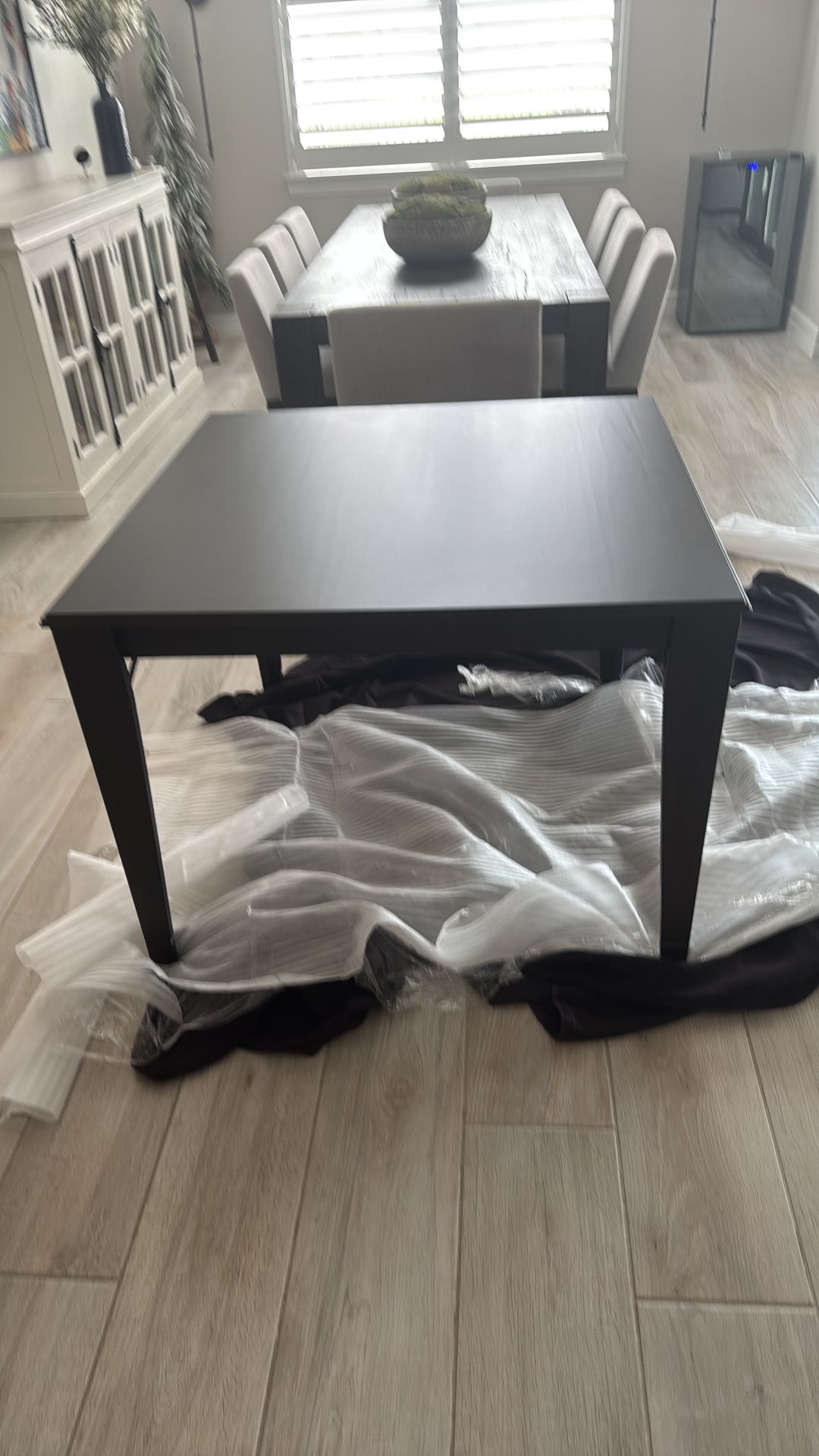 Solid wood folding table 39×39, and 29.5 inches tall. Excellent condition new. Purchased from front gate.
