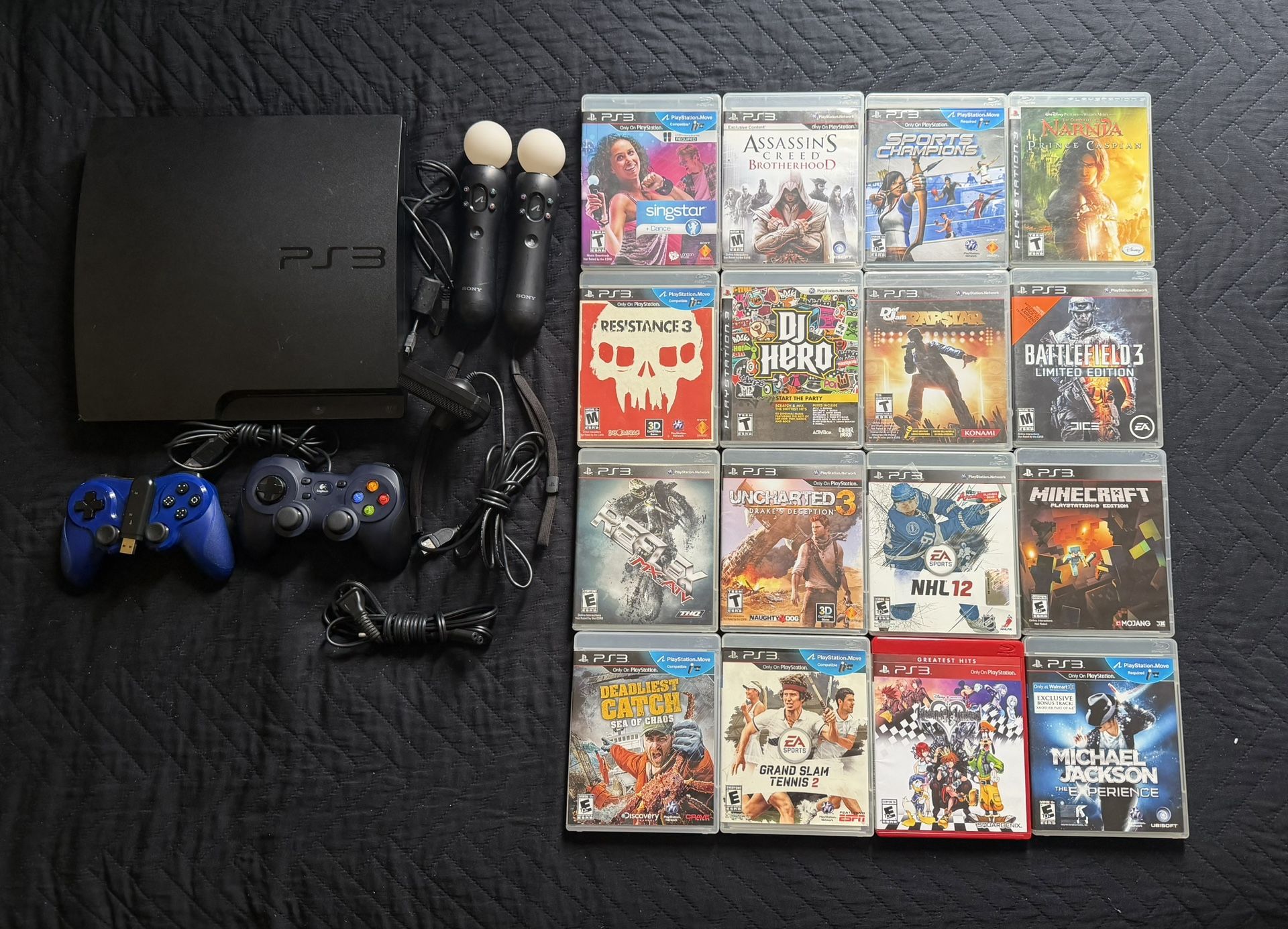 PS3 Bundle – Tested & Working 🎮 Selling a PS3 bundle in good condition. Everything has been tested and works perfectly. Includes: • PS3 console + power cable • 2 controllers (off-brand, both working) • PlayStation Move controllers (2) + camera • 12+ games (Minecraft, Uncharted 3, Battlefield 3, and more) • Def Jam Rapstar (BRAND NEW SEALED) Ready to play, just needs an HDMI cable. $180 OBO – message me with offers.