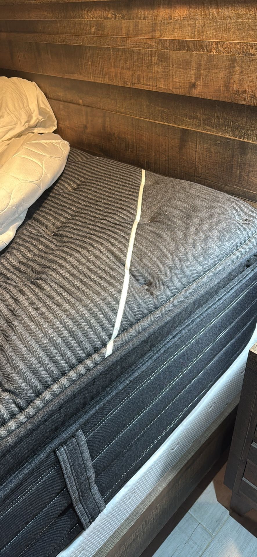 Great condition, have always had a mattress pad covering mattress, no stains for damage, moving and using my partners bed Beauty rest black series 3 plush pillow top Bought for $3000 Selling bedroom set (bedframe, side table and dresser, check profile for listings)