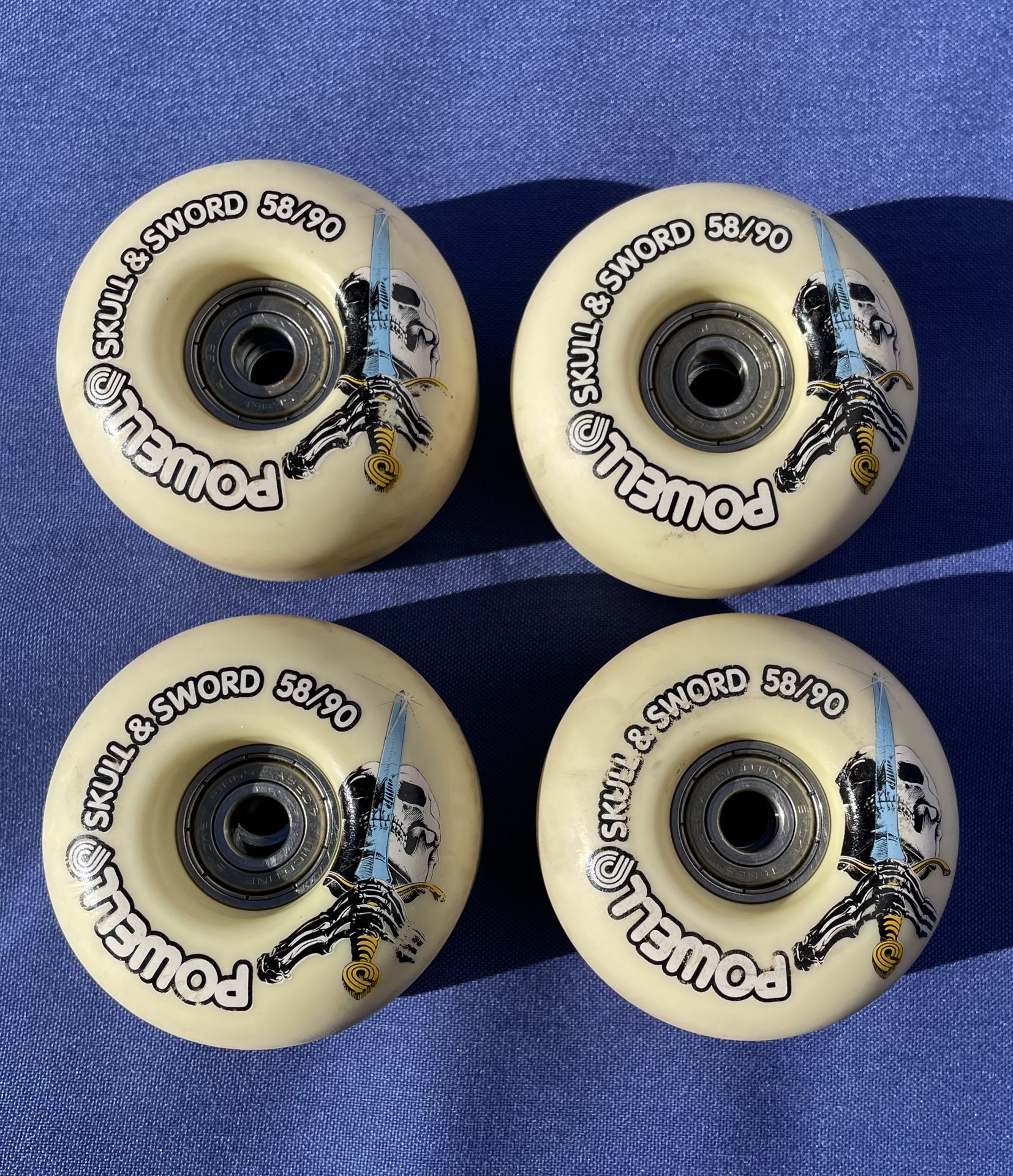 Powell SKULL AND SWORD Skateboard Wheels 58mm 90a OFF-WHITE With Bearings GUC
