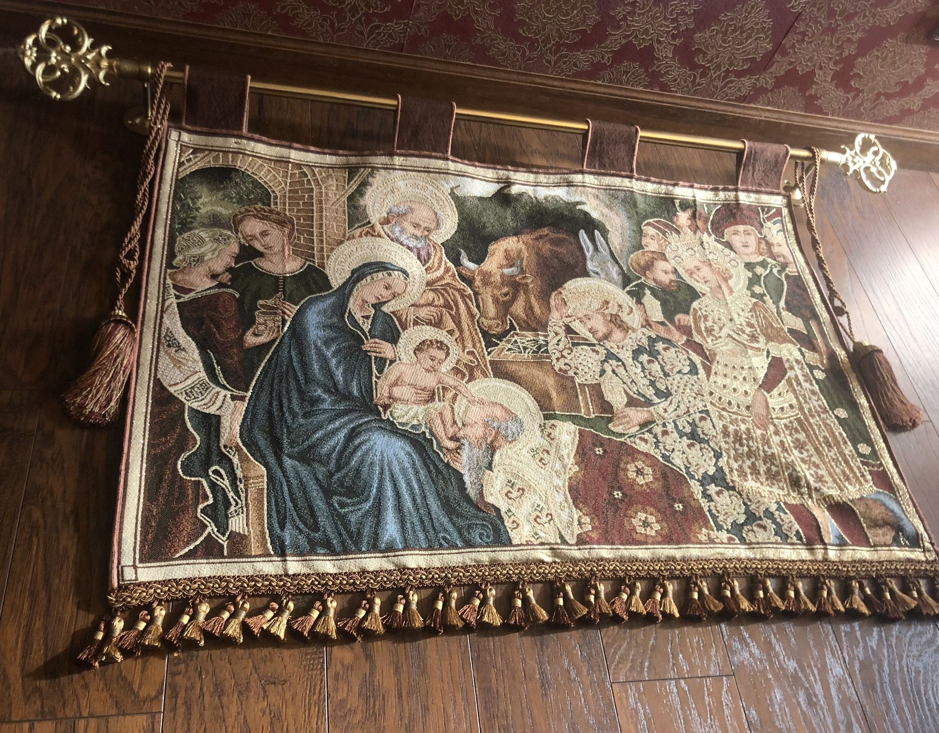 NEW Handmade Religious Holiday Tapestry (36”x28”)with Rod and Tassels