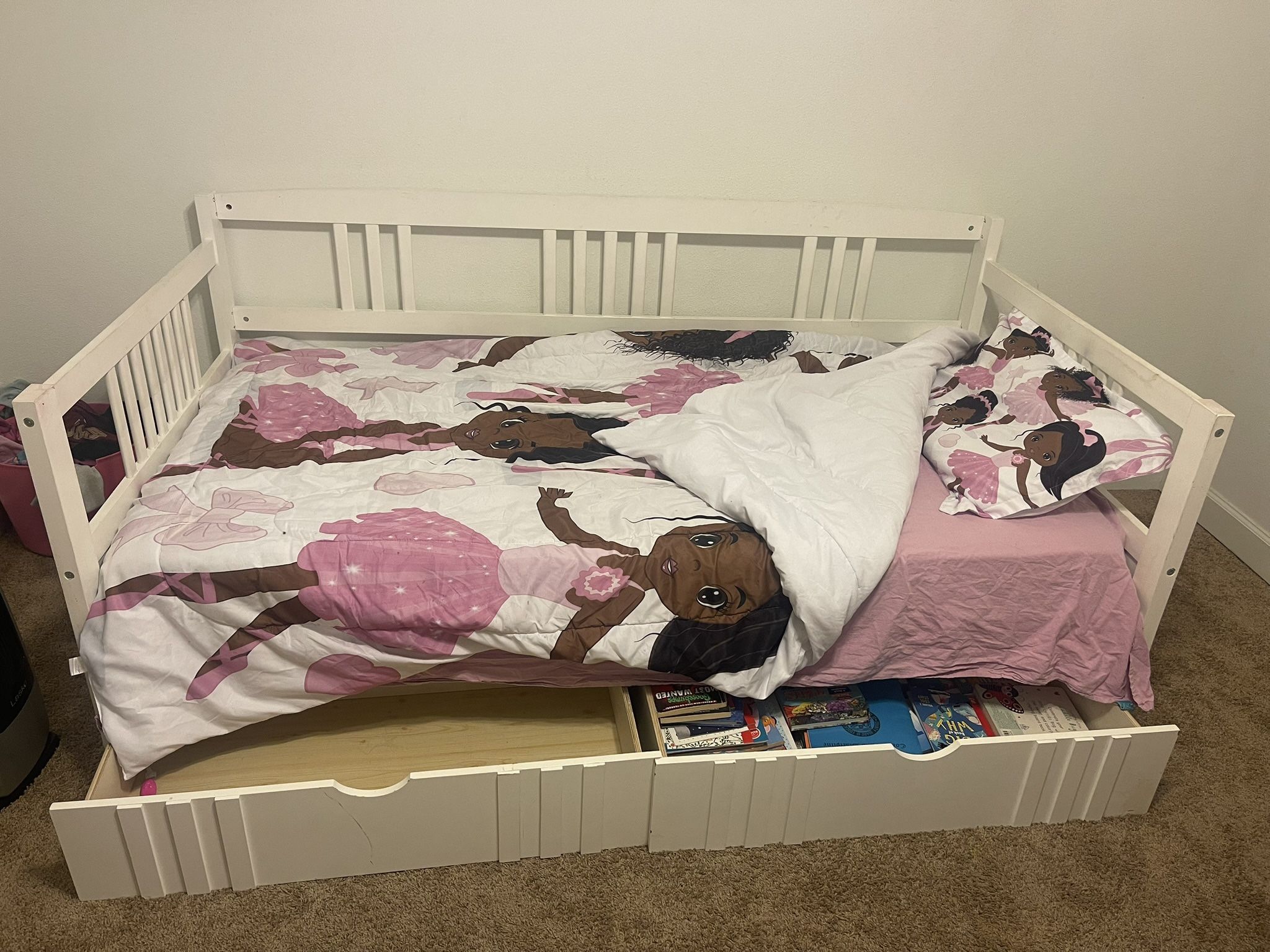 Twin Bed with mattress, Kid Chair with foot rest, Night stand