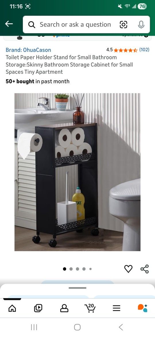 Toilet Paper Holder Stand for Small Bathroom Storage:Skinny Bathroom Storage Cabinet for Small Spaces Tiny Apartment