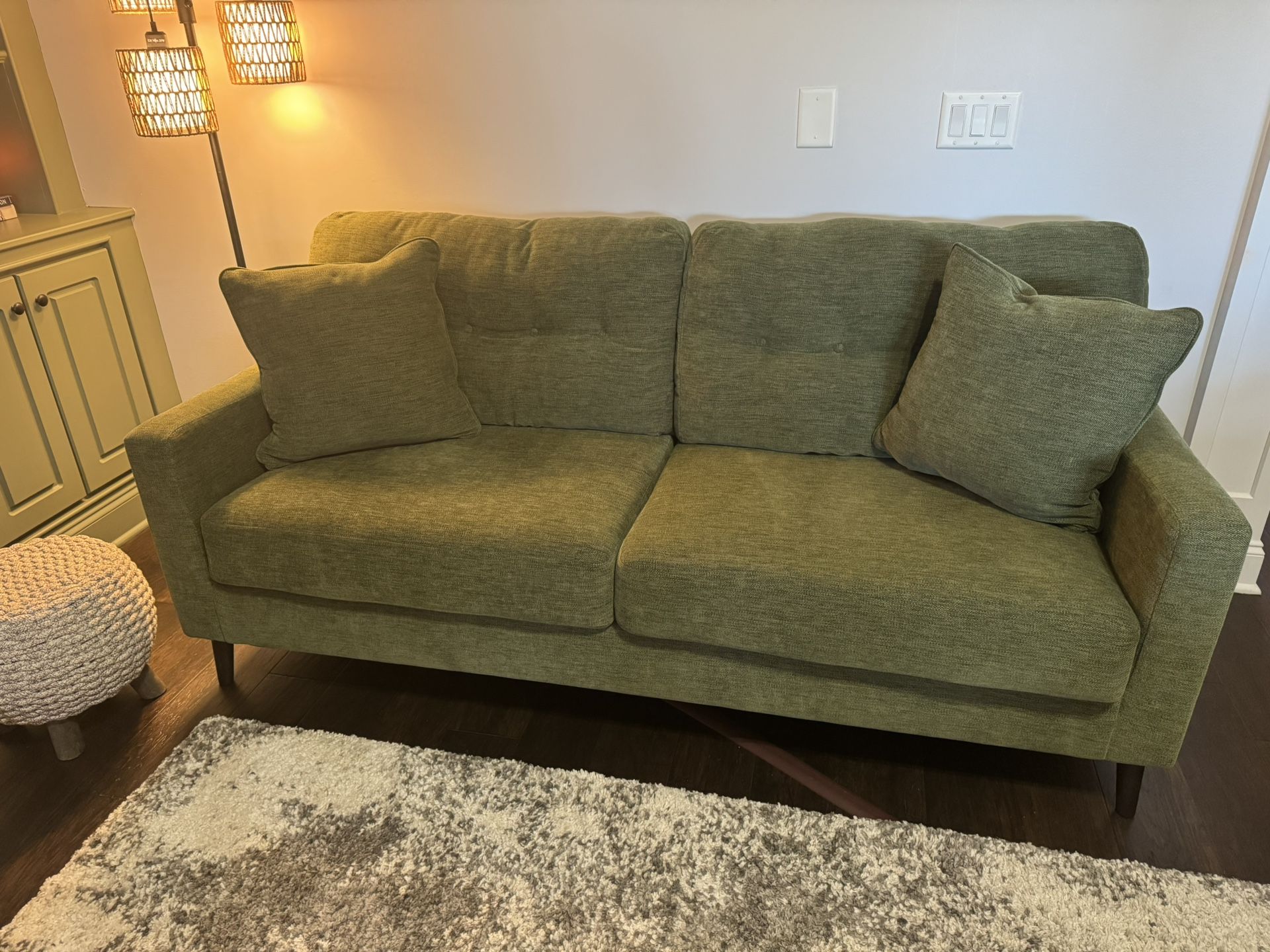Green sofa and Chaise lounge would like to sell as a set but will sell separate. Moving and having to downsize. This home is clean and smoke free.