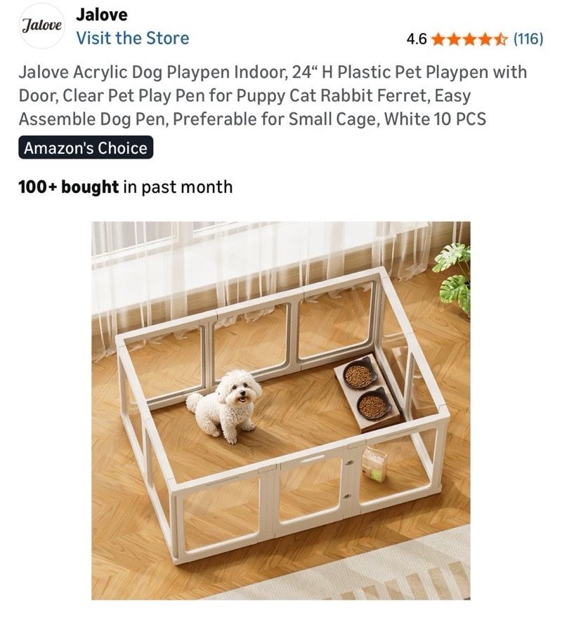 Jalove Acrylic Dog Playpen Indoor, 24" H Plastic Pet Playpen with Door, Clear Pet Play Pen for Puppy Cat Rabbit Ferret