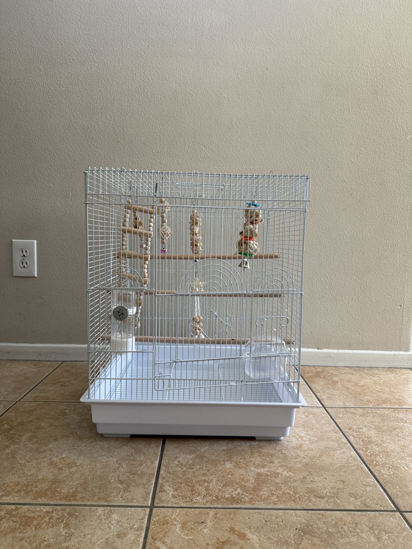 Bird cage can reduce or increase in hight 18 inch X 18 inch X 36 inch or reduce to 23 inch Very clean and rarely used . Comes with toys and some food supply. $40 OBO