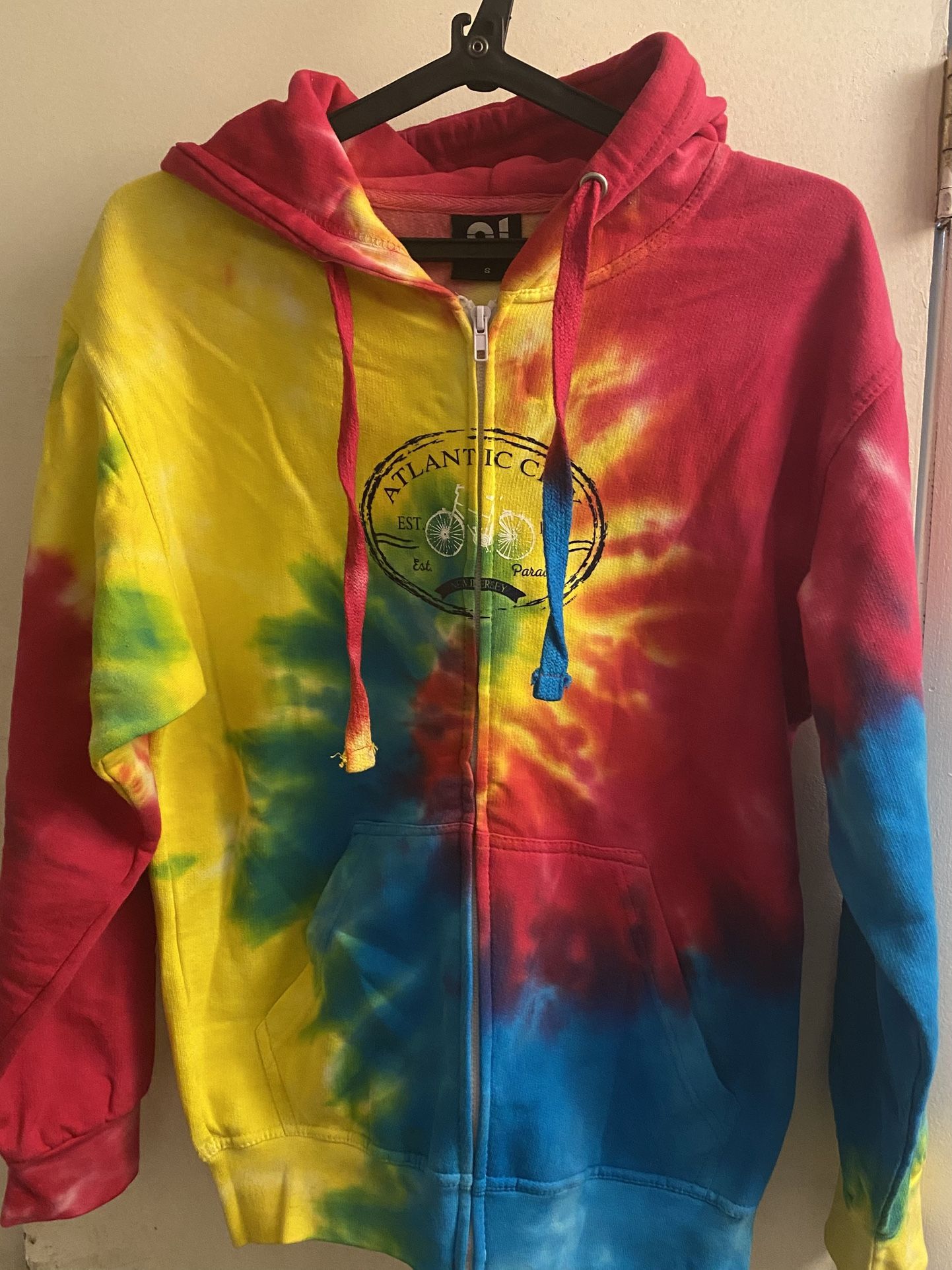 Colorful Tie-Dye Atlantic City Beach Zip-Up Drawstring Hoodie size Small