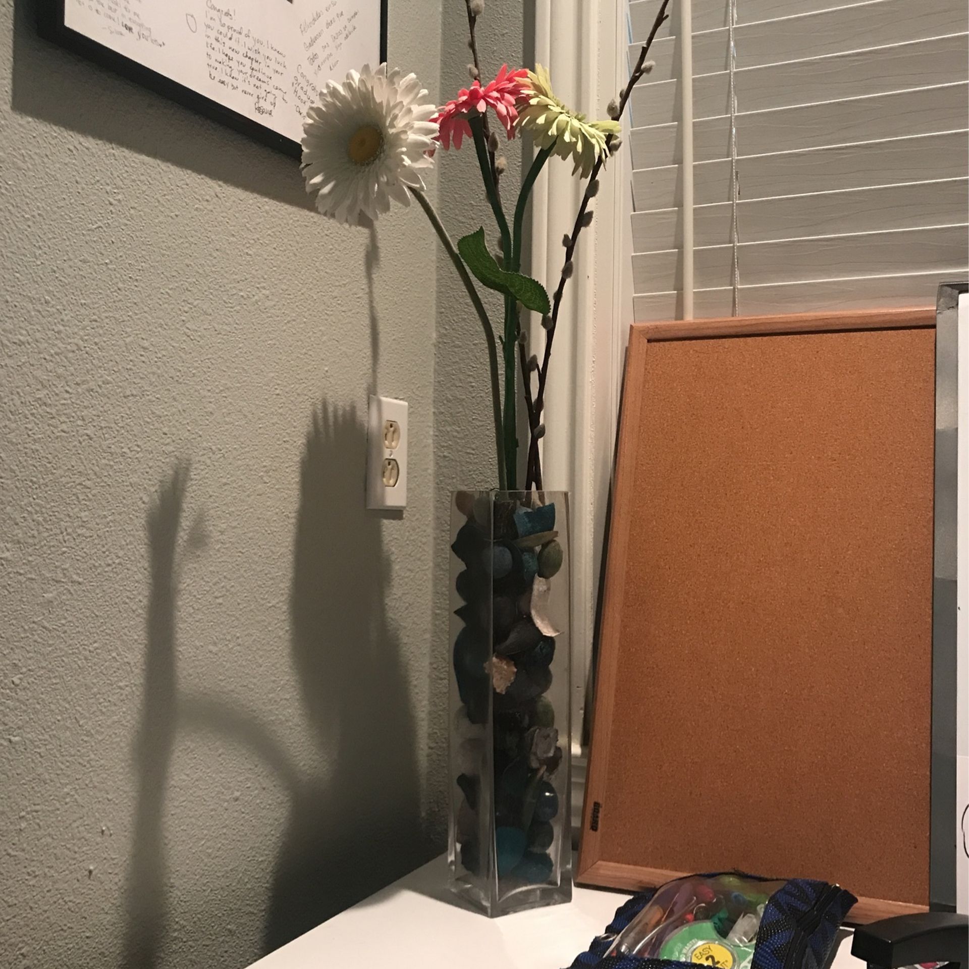 Daisy artificial flowers in a square shaped vase White, pink, lime flowers Perfect for desk, dorm, or home decor