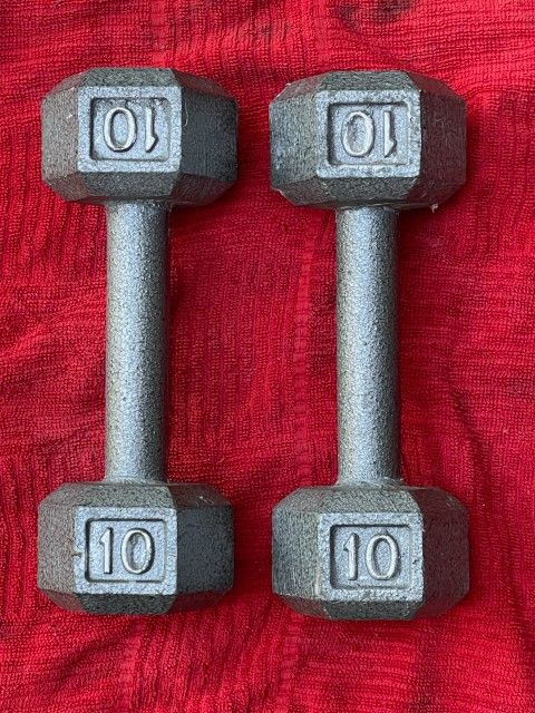 PAIR OF 10 POUND STEEL DUMBBELLS