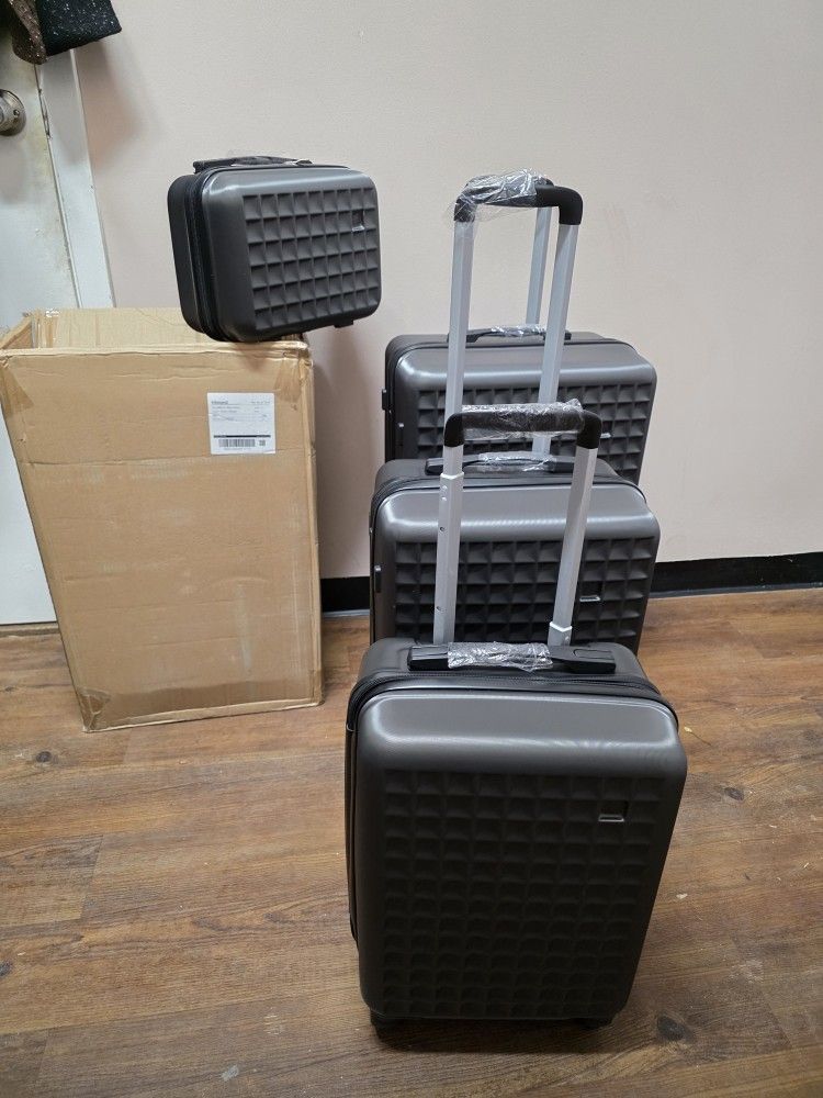 4 Pieces ABS Hardside Spinner Luggage Set, Lightweight , 3 Digit Combination Lock , Zipper, Swivel Caster Wheels. GRAY COLOR