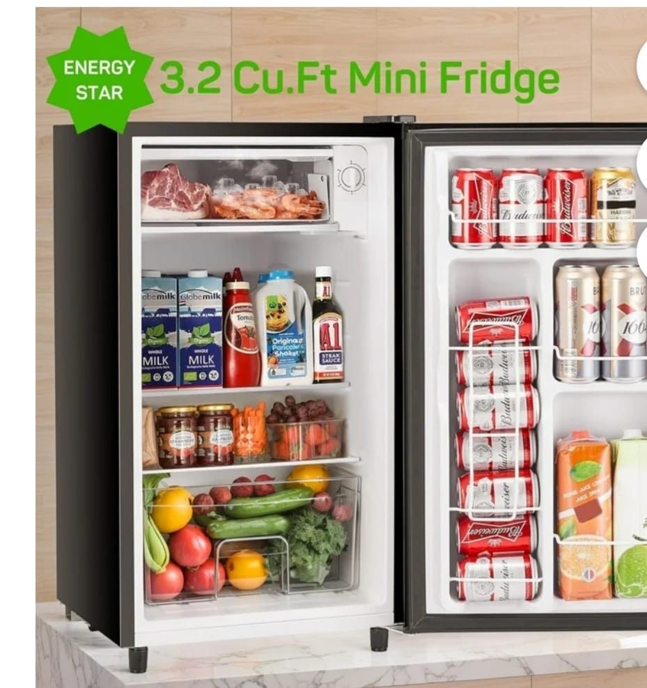 Mini Fridge with Freezer 3.2 Cu.Ft Small Refrigerator for Office, Dorm, Small Fridge with Adjustable Thermostat, Energy Saving, Singel Door, Black