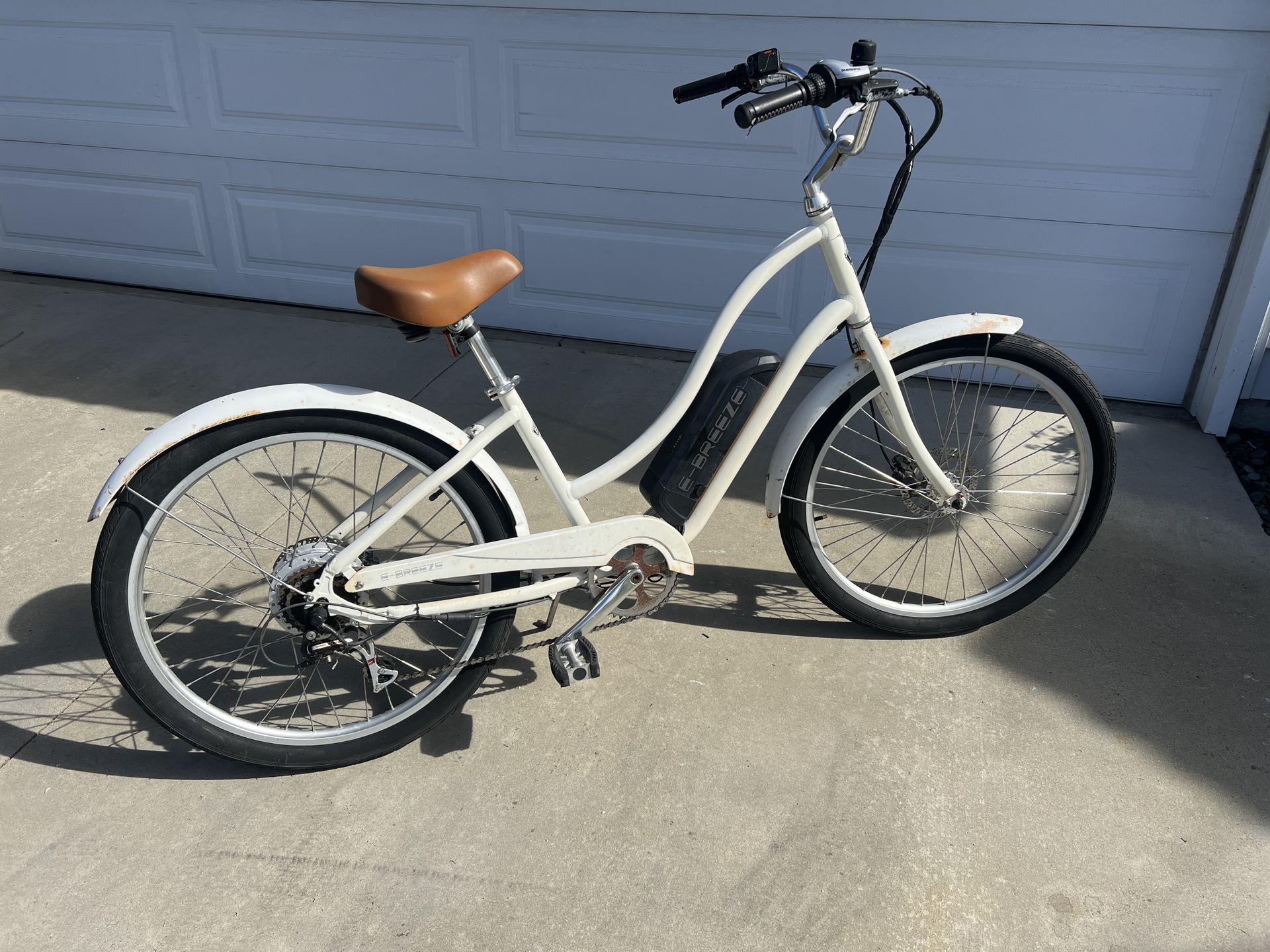 26” girls 10 speed beach cruiser with disk breaks . Electric bike but don’t have a charger for it . Complete bike and rides very good , shifts and breaks great .